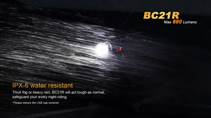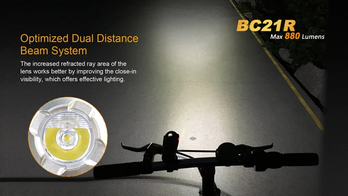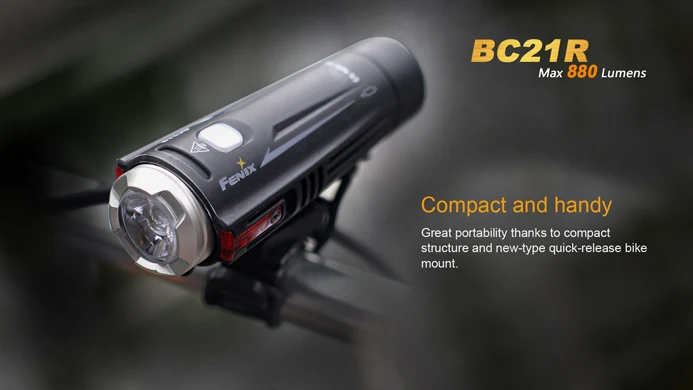 Описание товара Гибкое применение мощности с удобством переноски! Новый Fenix BC21R Перезаряжаемые велосипед светильник становится целостный универсальная велосипед светильник, который обеспечивает максимальную 880-люмен нейтральный белый светильник. BC21R оснащен четырьмя выходными режимами, а также вспышкой, чтобы повысить активность на велосипеде. Встроенный боковой красный светильник способствует безопасности езды. Быстроразъемное крепление для велосипеда облегчает монтаж или демонтаж светильник. Поскольку BC21R питается от одной стандартной аккумуляторной батареи 18650 или двух неперезаряжаемых батарей CR123, вы можете легко демонтировать светильник, изменить батареи, а затем продолжить эти длительные права. Этот хорошо продуманный велосипедный светильник подходит для любой деятельности. Идеально подходит для дорожных гонок, езды на велосипеде и городских поездок. Технические характеристики Используйте один Cree XM-L2 T6 нейтральный белый светодиодный аккумулятор с цветопередачей Режимы вывода Турбо: 880 люменов для 1 ч. 20 мин. Высота: 380 люменов в течение 4 часов. 30 мин. Середина: 200 люменов в течение 8 часов. 30 мин. Низкий: 100 люменов в течение 15 часов. 50 мин. Вспышка: 380 люменов и 100 люменов Компактный и удобный Оптимизированная система двойного расстояния Максимальное расстояние луча: 410 футов (125 метров) Микро USB Прямая зарядка Аккумулятор 18650 может заряжаться внутри светильник с помощью прилагаемого usb-кабеля. Аккумулятор 18650 также может заряжаться во внешнем зарядном устройстве. Несколько источников питания Один переключатель, удобное использование Встроенная защита от высокого напряжения, защита от избыточной разрядки Индикатор уровня заряда батареи Предупреждение о низкой мощности напоминает вам о необходимости замены батареи Защита от перегрева, чтобы избежать высокой температуры поверхности Новое быстроразъемное крепление для велосипеда для легкой и безопасной регулировки направления на светильник Цифровой регулируемый выход поддерживает постоянную яркость Изготовлен из алюминиевого сплава с отличной теплоотдачей Водонепроницаемость по IPX-6 стандарту (Плотный туман или сильный дождь. ** Пожалуйста, убедитесь, что крышка USB надежно покрыта Нажмите здесь для руководства пользователя BC21R Использованные батареи (аккумулятор 18650 входит в комплект) В комплект входит перезаряжаемая батарея емкостью ARB-L18-2300 мАч. Одна аккумуляторная батарея 18650 (принимает Fenix ARB-L18-2600, ARB-L18-2600U, ARB-L18-2900, ARB-L18-3500 или ARB-L18-3500U и Tenergy). Каждый из них имеет различную мАч. Чем выше мА · ч, тем дольше время работы между зарядами. Две неперезаряжаемые батареи CR123A. (Fenix не рекомендует аккумуляторы CR123) Если вы хотите одновременно зарядить 18650 батареи вне велосипеда светильник для тела, вы можете использовать один из этих зарядные устройства: ARE-X1, ARE-X1 +, ARE-X2 или ARE-C2 + Вам может быть интересен этот ARE-X11 комплект для зарядки Что входит в ваш светильник 1 Fenix BC21R велосипедный светильник 1 Fenix 3,6 V/2300mAh аккумуляторная батарея 1 BC21R крепление для велосипеда 1 usb-кабель для зарядки 1 крепление для велосипеда 1 монтажный ремешок для велосипеда 1 запасное уплотнительное кольцо 1 Руководство пользователя 1 гарантийный талон