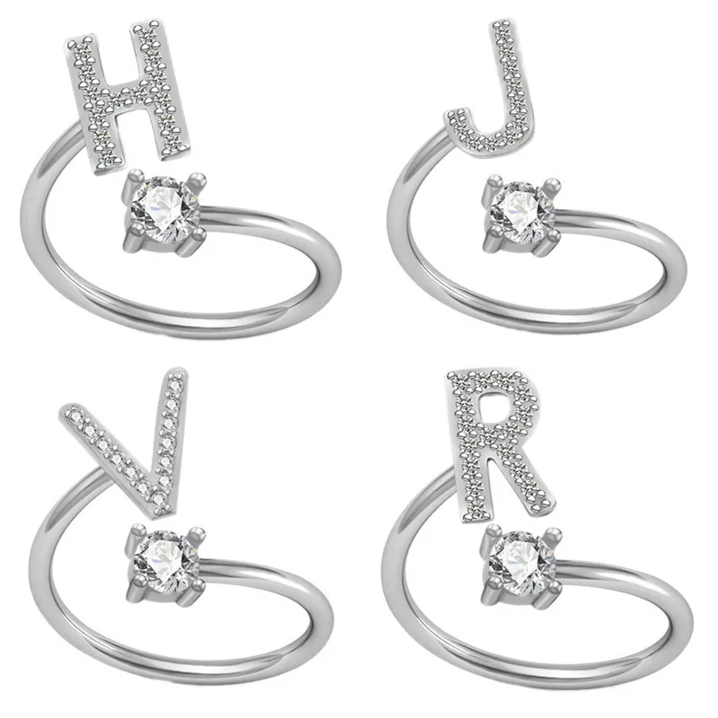 Персонализированные кольца с кристаллами золотого и серебряного цветов, A-Z кольца с буквенным именем, очаровательные ювелирные изделия с буквенным принтом, модный подарок