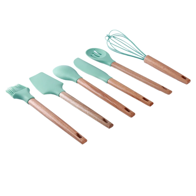 Размеры:Длина кисти * ширина 28*5 см, длина ложки/дуршлага * ширина 30,5*6 см, длина лопаты * ширина 30*6,6 см, длина скребка * ширина 30*4 см, венчик для яиц длина * ширина 30,5*6,2 см