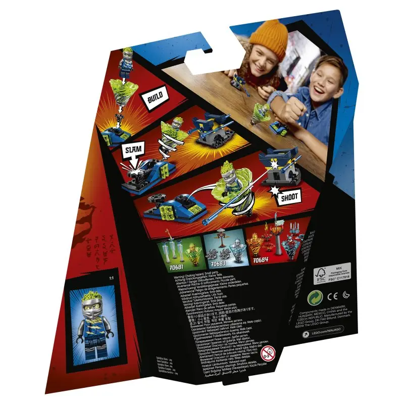 Практикуй приемы Кружитцу и повышай точность своих атак с Джеем в боевых доспехах! Запусти фигурку Ниндзя молнии в облачении запретного Кружитцу. Помести его в торнадо-спиннер и ударь по стартовому элементу, чтобы раскрутить игрушку по максимуму! А затем стреляй подпружиненными ракетами по вращающейся игрушке. Никаких правил и ограничений! С этим игровым набором LEGO® ты можешь устроить собственные битвы на спиннерах LEGO® NINJAGO® со своими друзьями за звание легенды ниндзя!