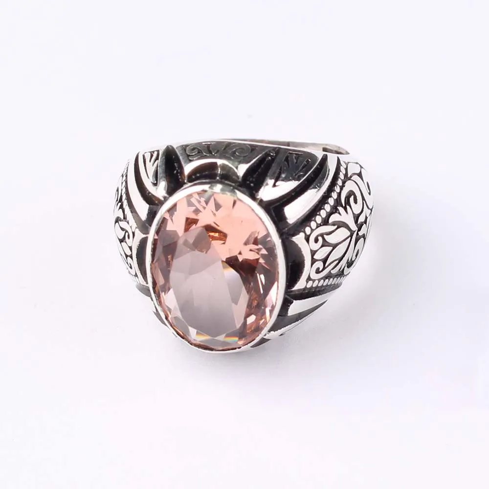 Material: 925 sterling silver Main stone: morganite gemstone Stone width: 13.20 mm Stone height: 21 mm Ring weight: 9 g