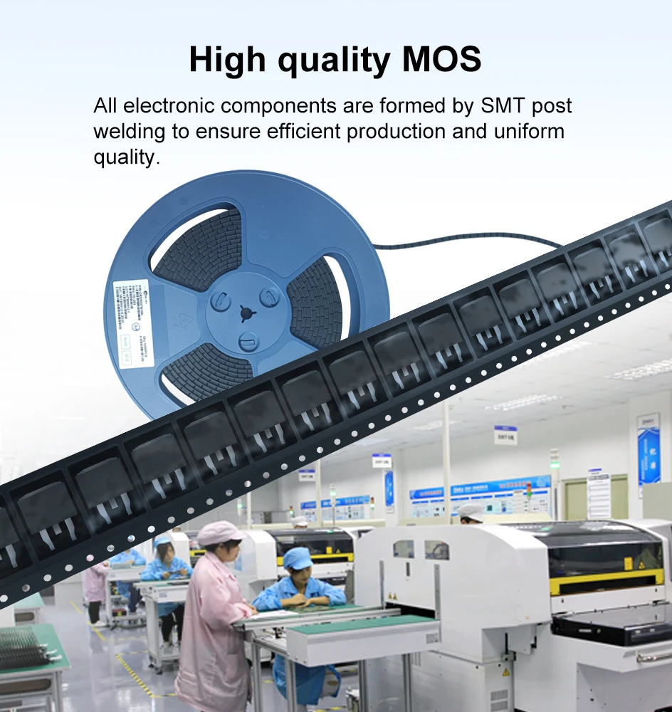 * Медный ток: усиливает непрерывность тока, чтобы предотвратить повышение температуры из-за перегрузки по току. 200A использует большие вафельные МОП для чрезмерного тока и укрепляет канал рассеивания тепла.