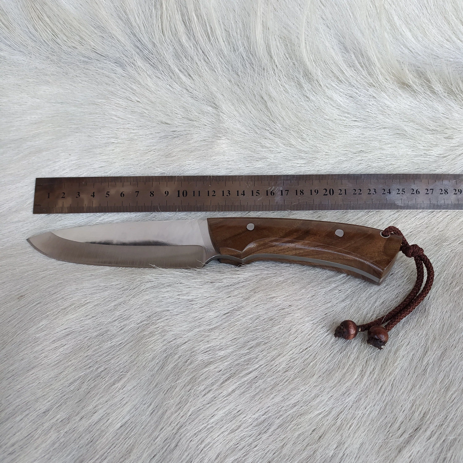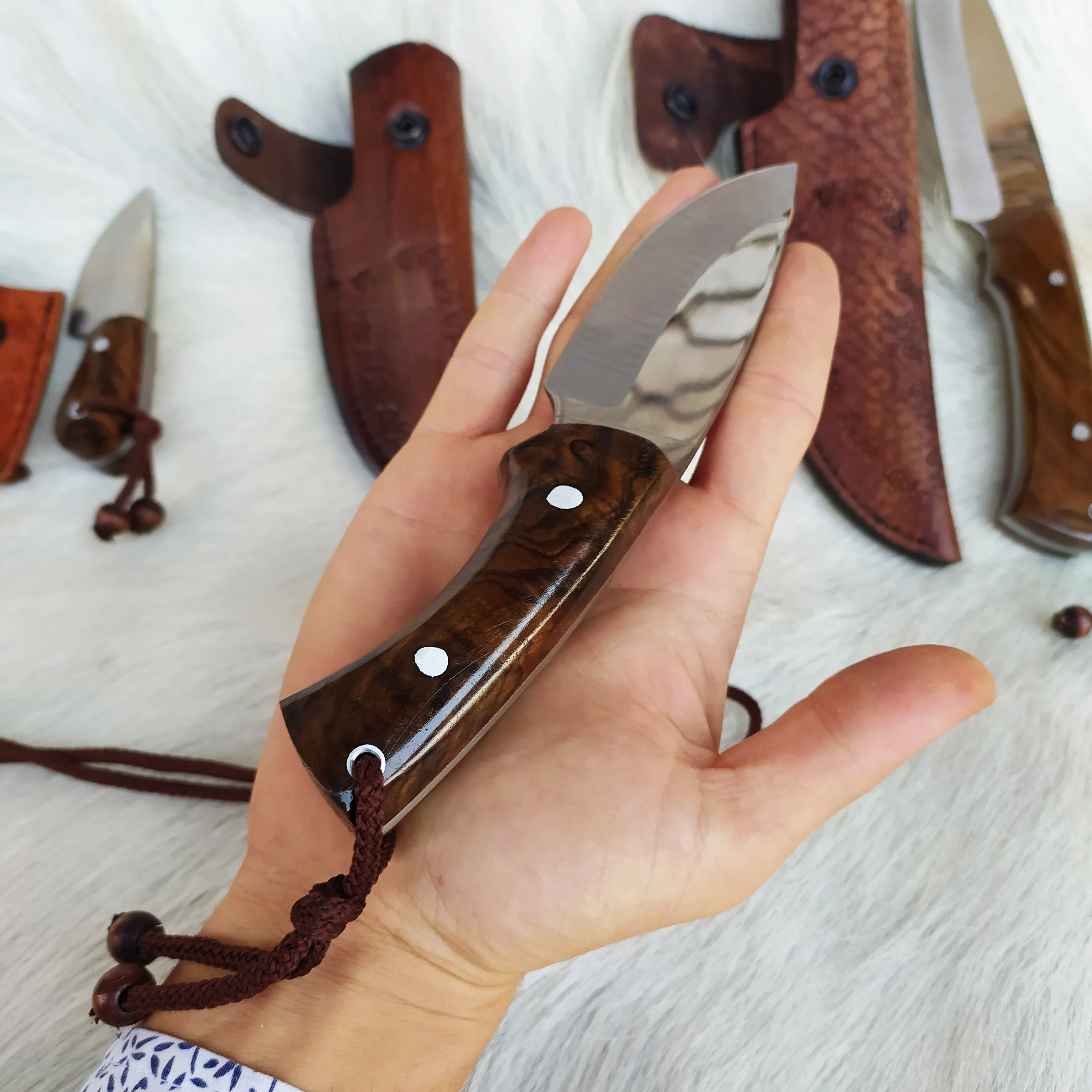 Охотничий нож ручной работы из кованой стали ножны воловьей кожи рукоятка ореха 4