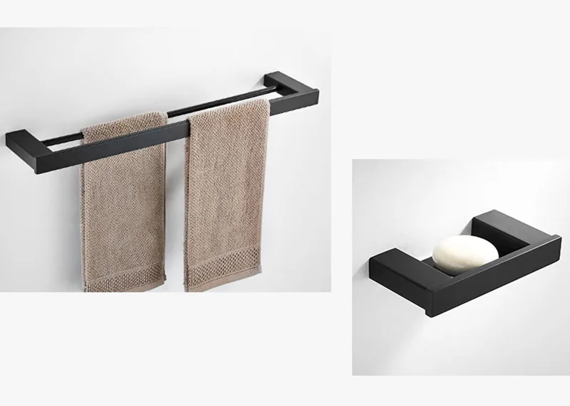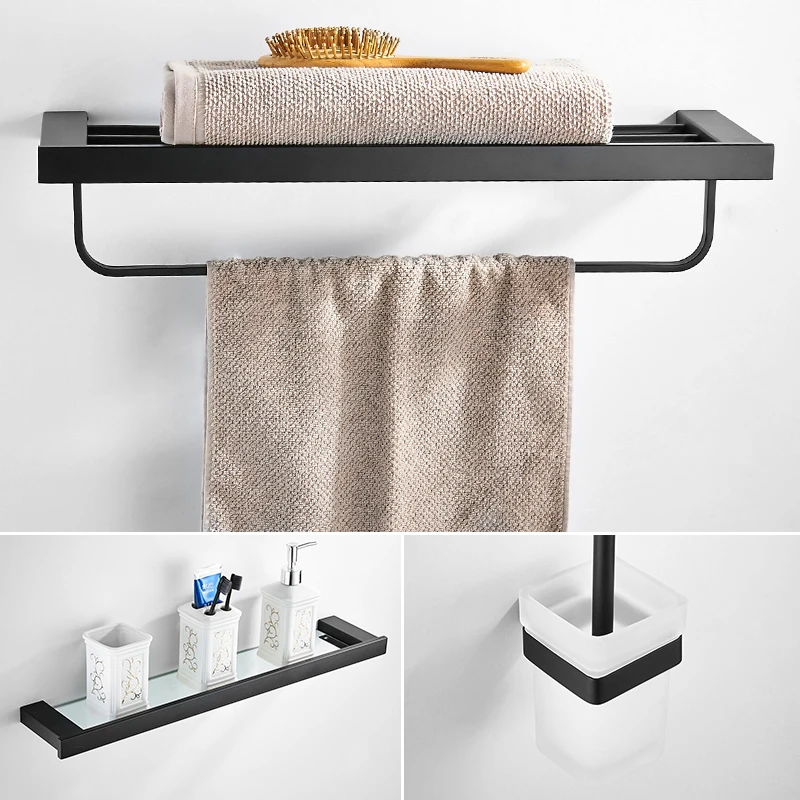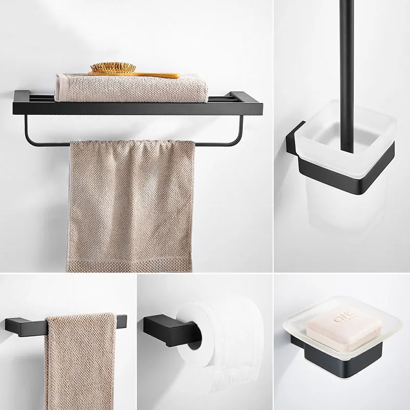 Аксессуары для ванной комнаты из нержавеющей стали 304, черная вешалка для полотенец стеклянная полка, держатель для зубных щеток, мыльница, аксессуары для ванной комнаты