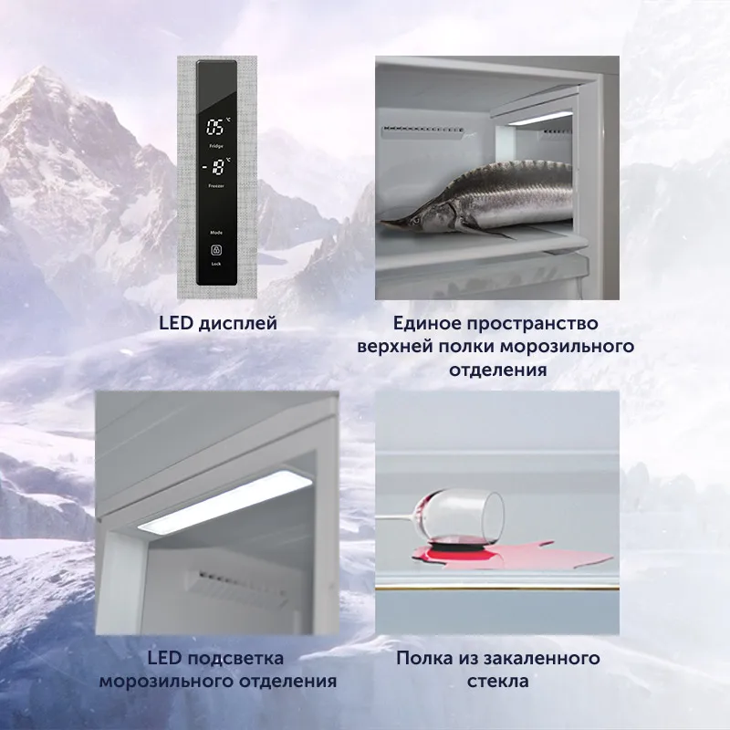 Многопоточная система охлаждения поддерживает оптимальную температуру на каждой полке, поэтому продукты дольше остаются свежими.