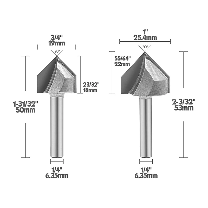 V-Groove Bit is designed to cut deep or shallow V grooves. The bit is great for sign making or for adding decorative accents to furniture and plaques.