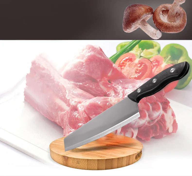 Нож изготовлен из нержавеющей стали 4Cr13, сверхпрочное, антикоррозийное лезвие, удобная ручка, вы можете использовать его для резки мяса, фруктов, овощей, шелушения поверхности фруктов и т. Д.