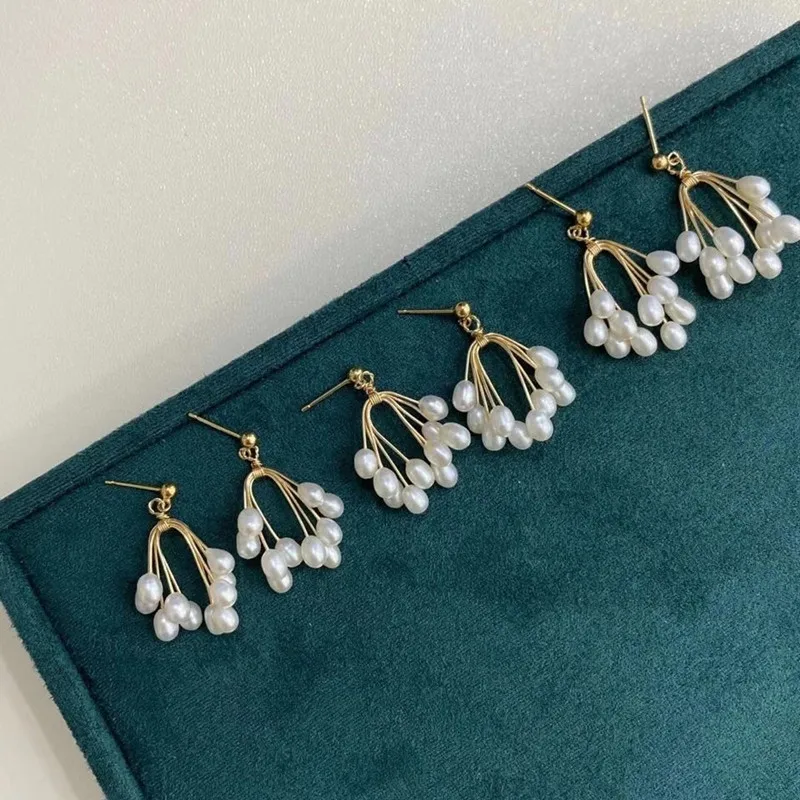 Горячая продажа Мода 2020 Лето Твердые S925 безопасные булавки мульти бусины натуральные жемчужные серьги в виде гроздьев винограда женский свадебный подарок для невесты