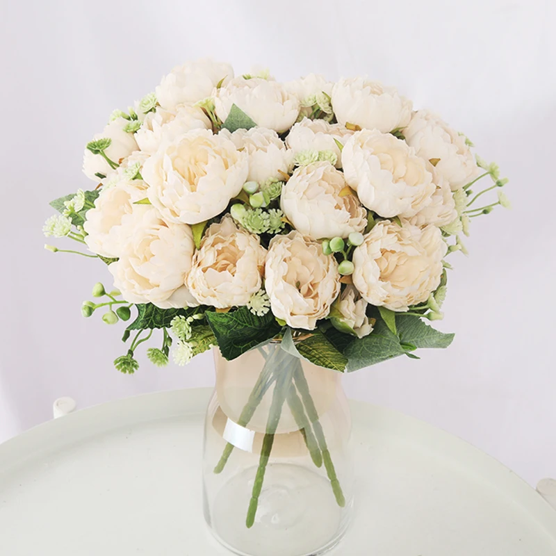 5 heads silk peony artificial flowers home living room decor large diy fake flower wedding decoration bride bouquet high quality