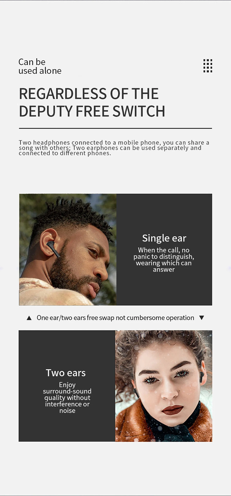 2 bluetooth-наушники (наушники слева и справа), 1 x коробка для зарядки и посылка! 1 кабель для зарядки Micro USB 1 x Руководство пользователя