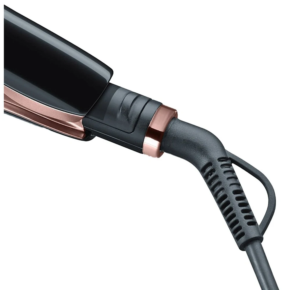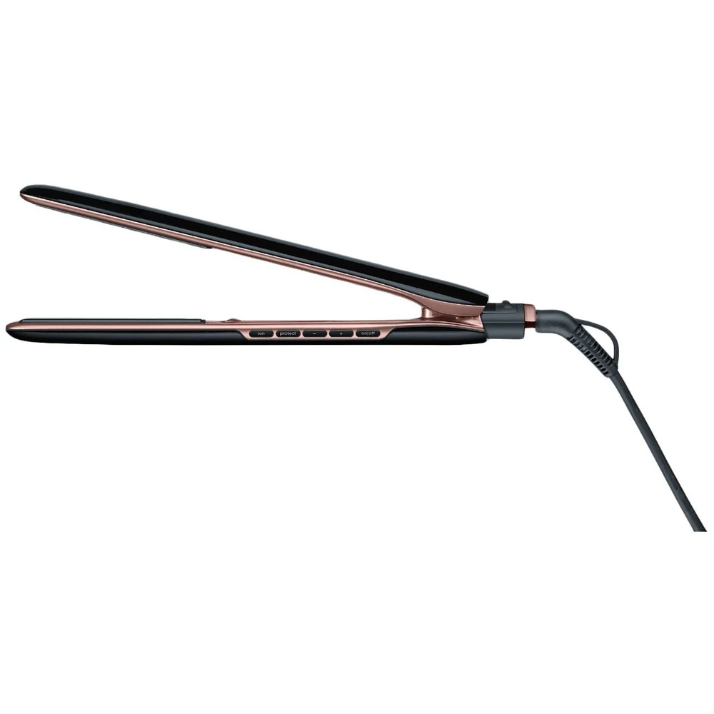 - Дополнительная информация: закругленные пластины позволяют не только выпрямлять волосы, но и делать укладку, функция защиты оберегает волосы и сохраняет их блеск, 3 уровня для индивидуальной настройки в соответствии с типом волос
