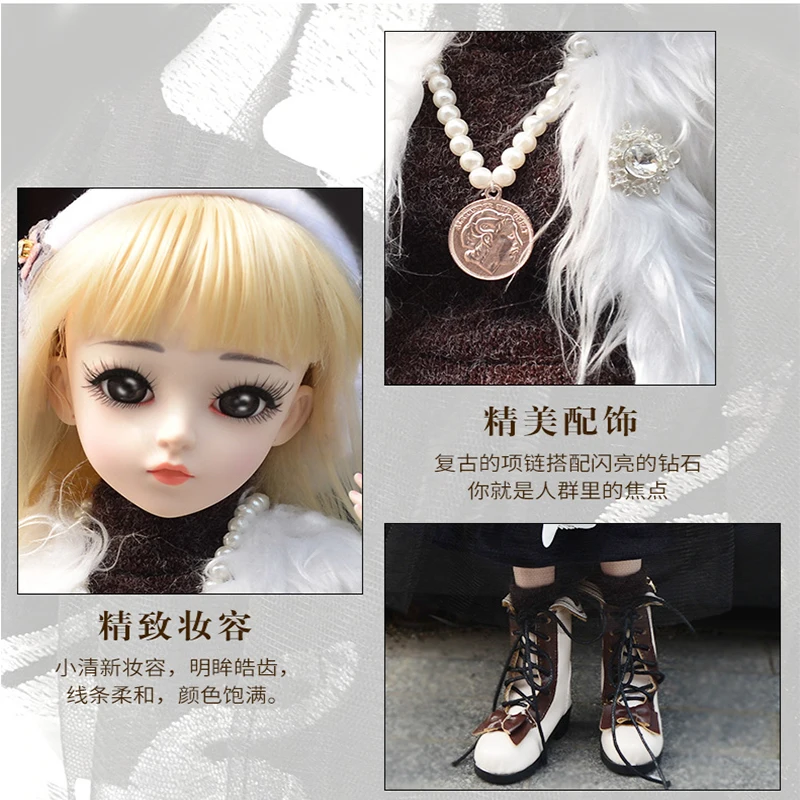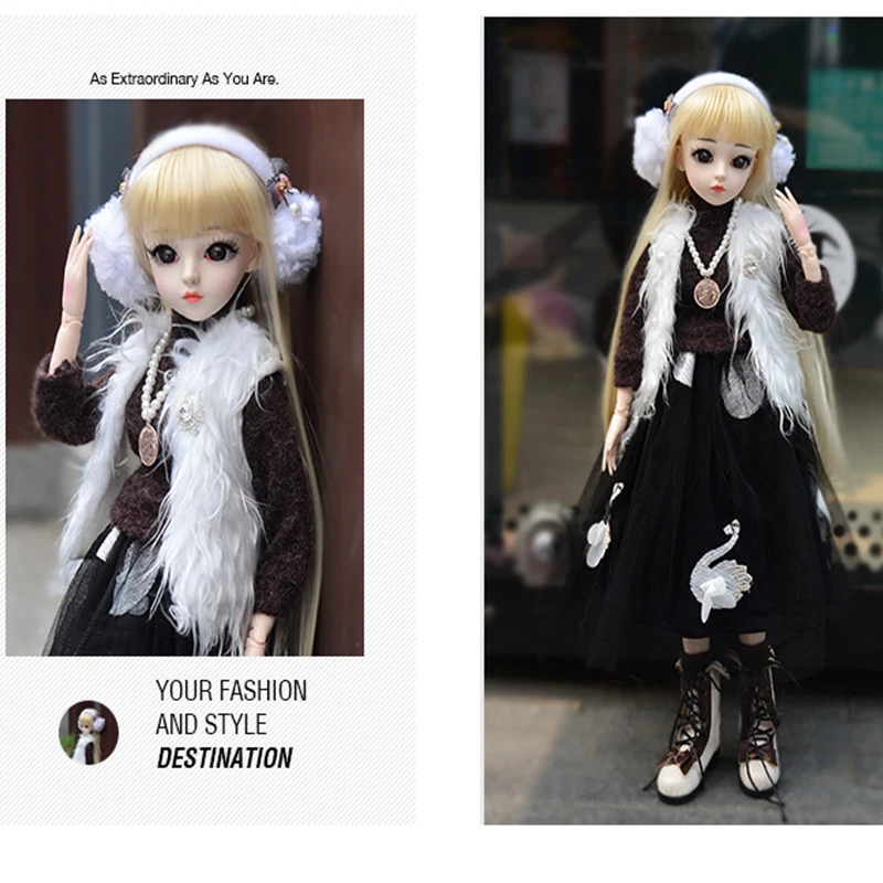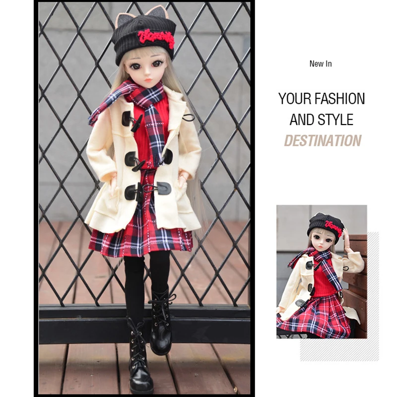 Модная Кукла BJD, 60 см, куклы DIY, повседневные 18 шариковых шарнирных кукол DIY BJD с зимней одеждой, наряд, обувь, куклы для макияжа для девочек