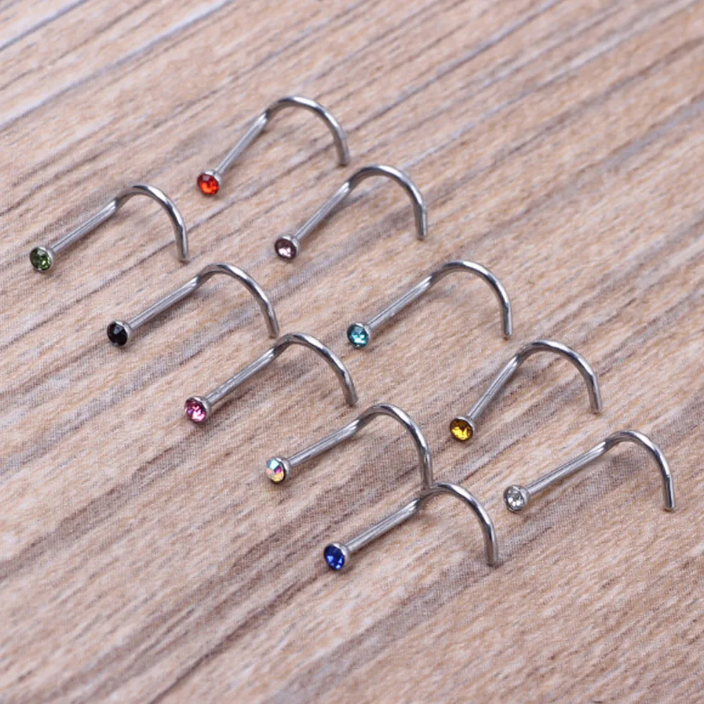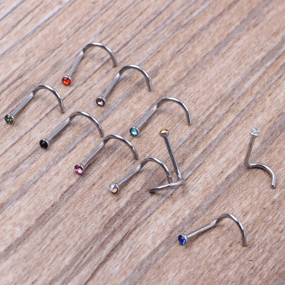 2 шт хирургическая сталь Малый драгоценный камень болт с кристаллом нос гвоздики кольцо для пирсинга