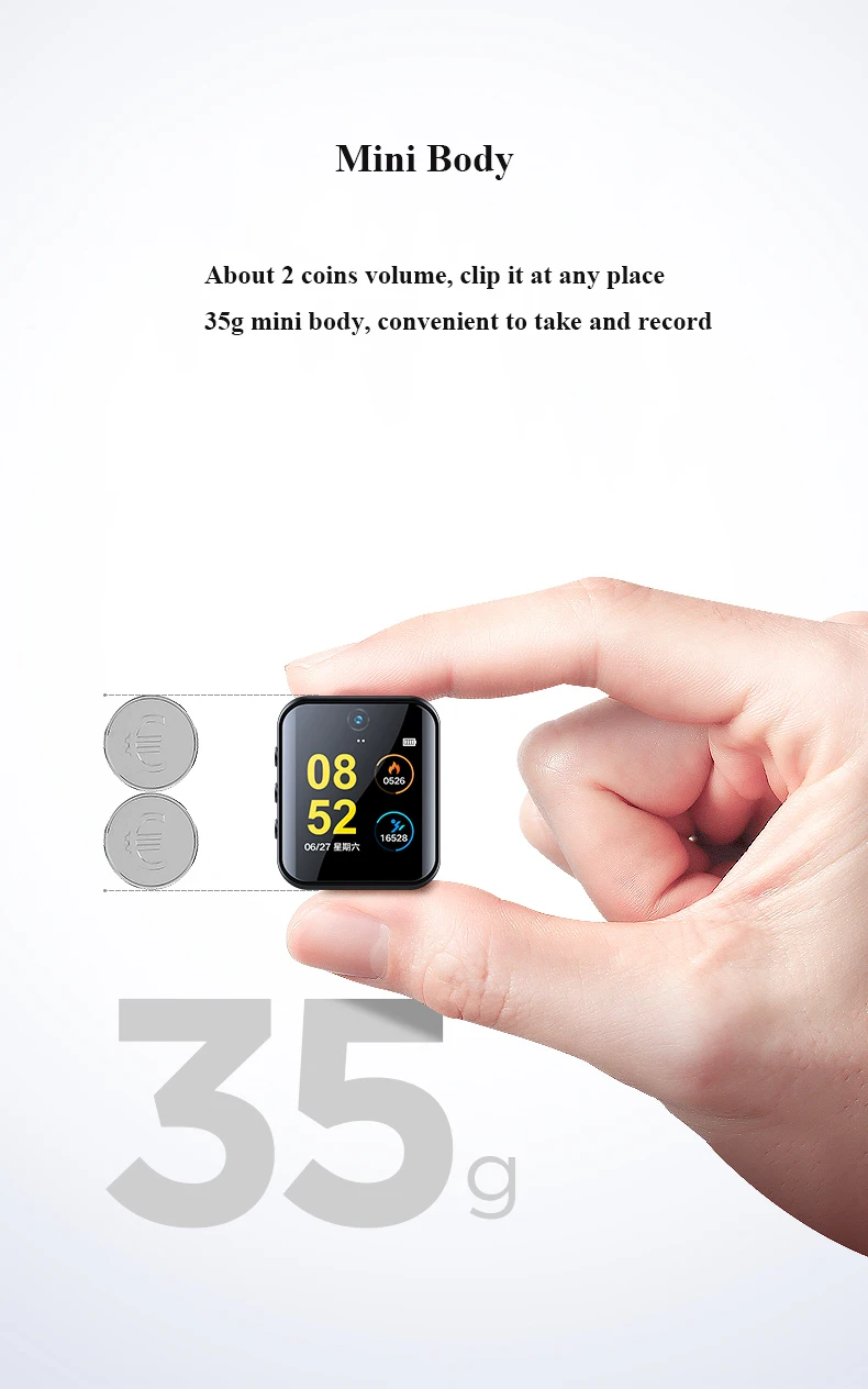 1. Корпус изготовлен из пластика и против падения 2. Один ключ для начала записи 3. Запись и зарядка одновременно. 4. Циклическая запись 5. HD 1080P 6. Аудио и видео рекордер, Спорт DV, инструмент правоохранительных органов, Часы, шагомер 7. Поддержка tf-карты от 8 Гб до 128 ГБ 8. Синхронизация времени системы 9. Крепкий Задний зажим 10. Время записи около 2 ч после полной зарядки 11. Поддержка функции синего зуба. 12. Невидимая и бесшумная запись 13. Другие функции: светодиодный индикатор/Задний зажим 14. Цвет: черный