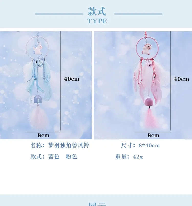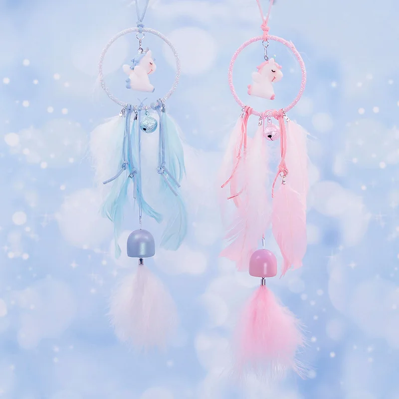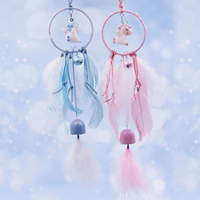 INS Unicorn Wind Chimes Dream Catcher Pendant Newborn Photo Props Home Decoration Girl's Gift Car Wall Hanging Feathers Decor