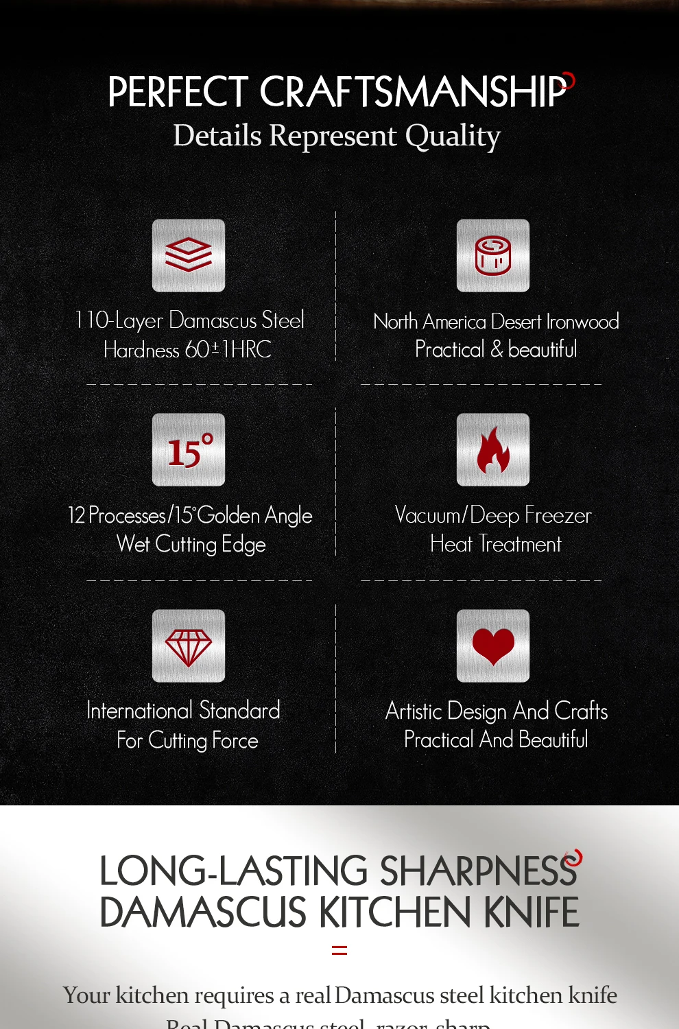 Материал ручки:Высокое качество Северная Америка Desert Ironwood + черный G10