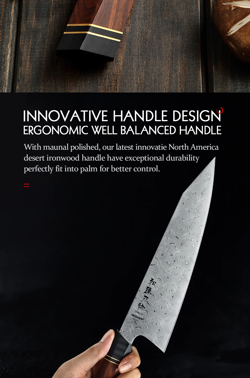 HEZHEN 110 слоевПоварской нож из дамасской стали