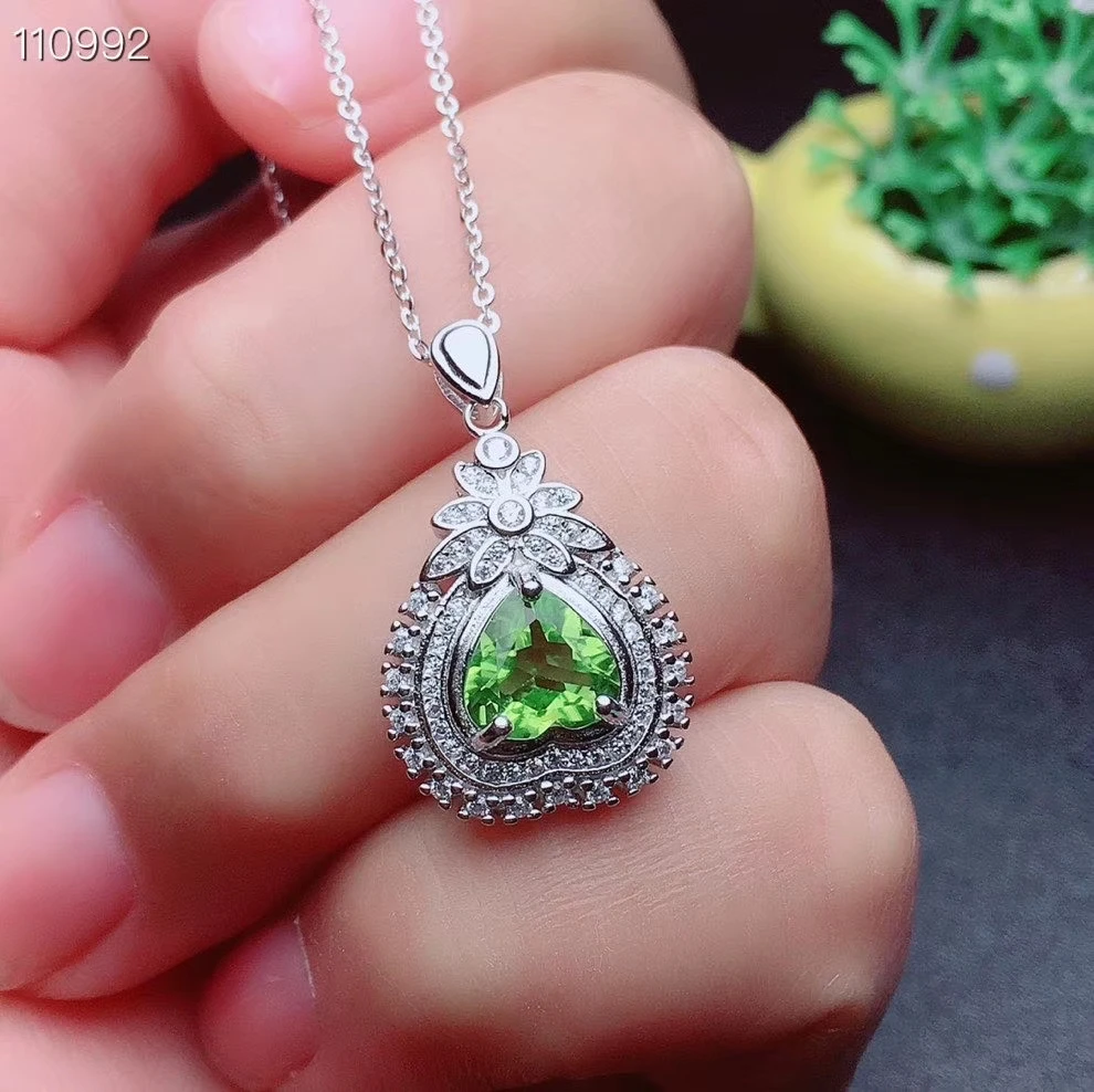 Очаровательный зеленый перидот драгоценный камень кольцо ожерелье ювелирный набор сердце натуральный драгоценный камень Классический Зеленый Цвет 925 серебро подарок на свидание подарок Любовь