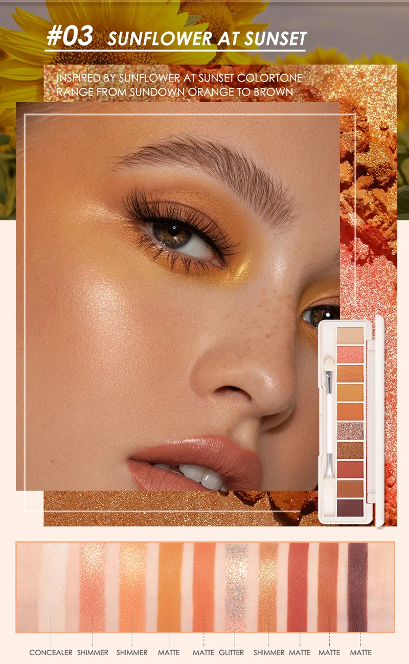Каждая палитра имеет праймер для век + матовый + мерцающий + блестящий, легко создать любой вид глаз.