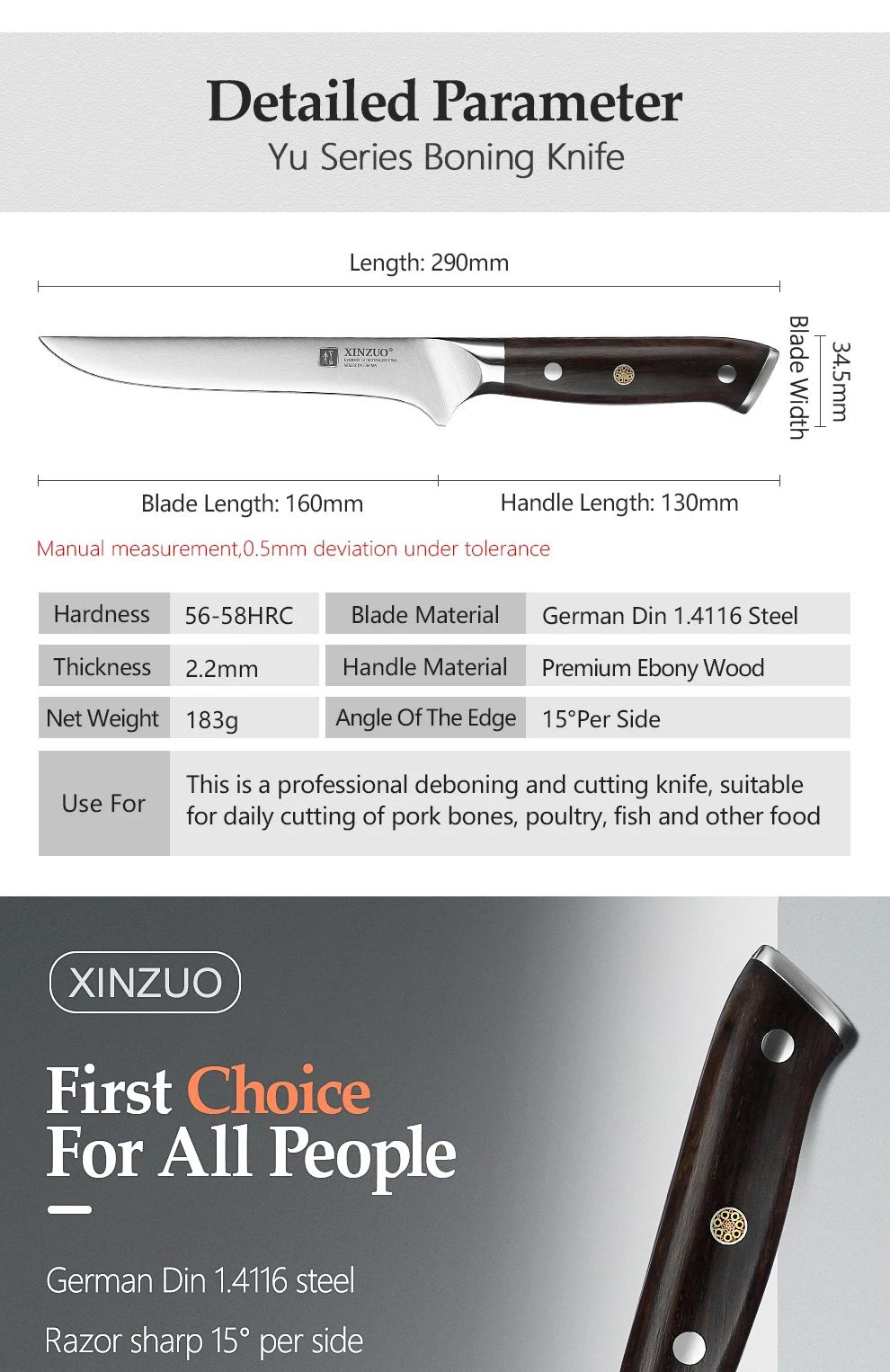 Материал лезвия:1,4116 молибденовая ванадиевая сталь Германии ThyssenKrupp Ggroup
