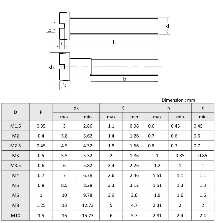 M1.6 (1,6 мм) / M2(2 мм) / M2, 5 (2,5 мм) / M3(3 мм)/M4(4 мм) / M5(5 мм) / M6(6 мм)