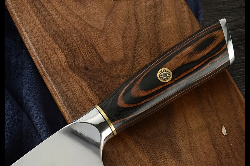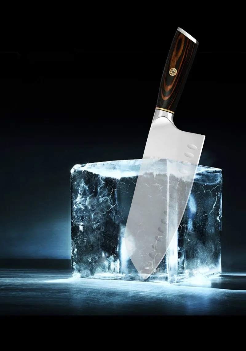 Нож изготовлен из Китайского центра кухонных ножей, Янцзян. Используя импортированную из Германии высококачественную нержавеющую сталь 5Cr15Mov, традиционная технология craftman, влажная режущая кромка делает лезвие острым и долговечным, приятный стиль позволит вашей кухне быть приятной.