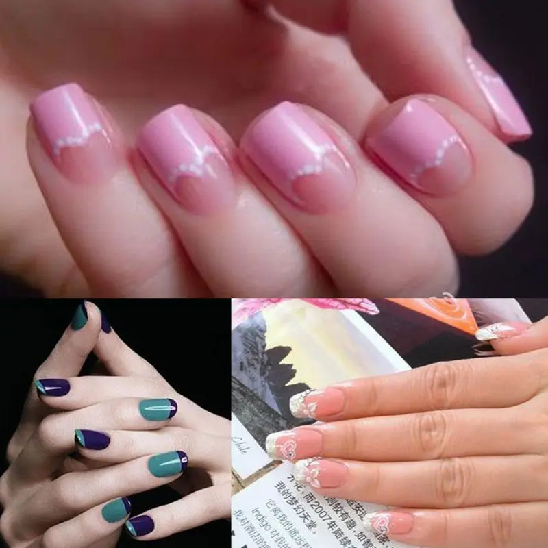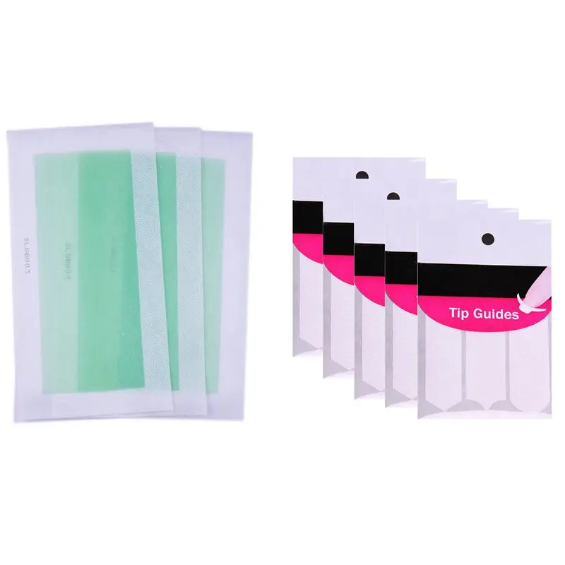 1. Use tweezers to carefully lift guides from backing sheet & place nail guide along natural nail tip.(Use a French tip pen for best results)
