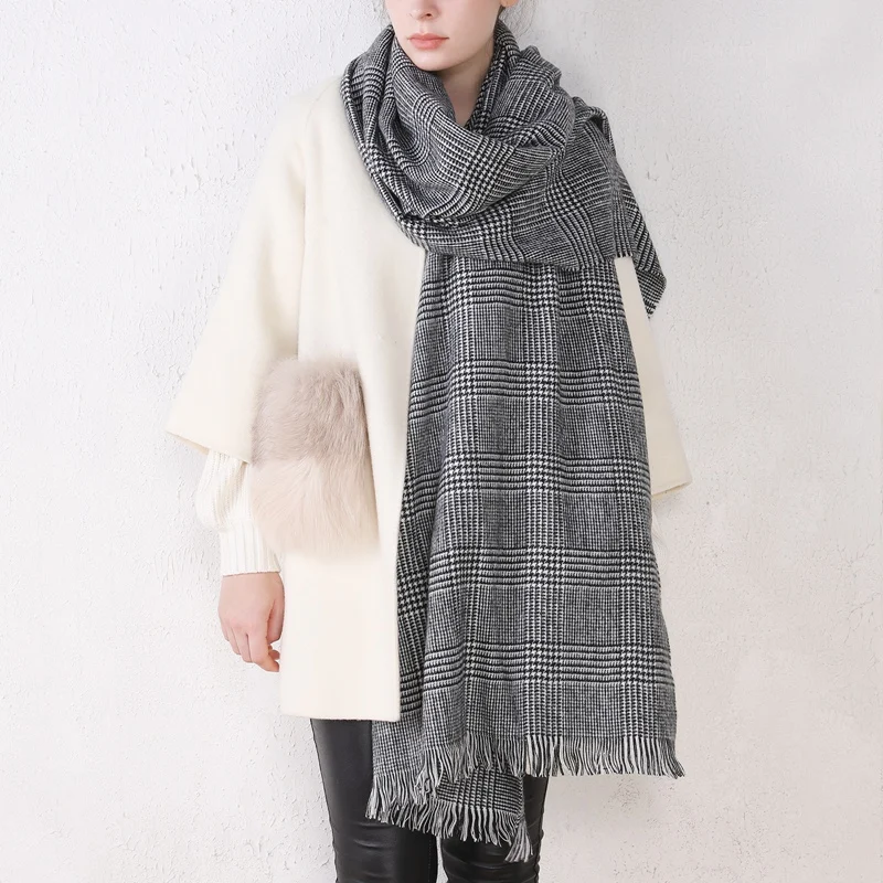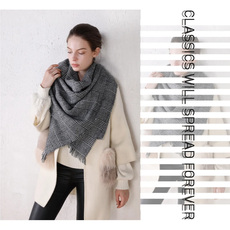 Дизайнерский вязаный весенне-зимний женский шарф 2020, теплые кашемировые шарфы в клетку, шали, роскошная брендовая Шейная бандана