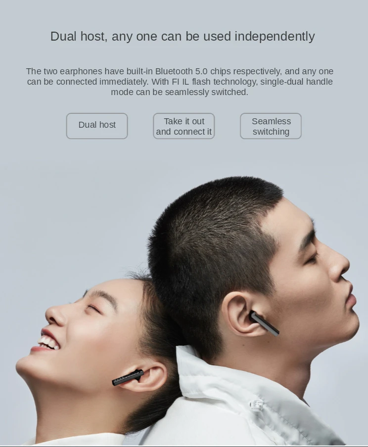 [Бинауральные использовать]: Чипы Bluetooth 5,0 встроены в два наушника, и любой наушник может быть подключен немедленно. Благодаря технологии подключения к вспышке FI IL однобинауральный режим можно легко переключать.