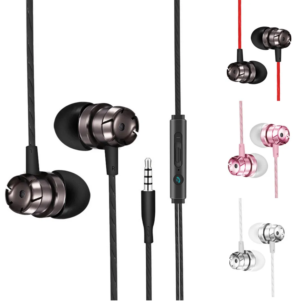 В ухо Супер бас металлические наушники микрофон 3,5 мм