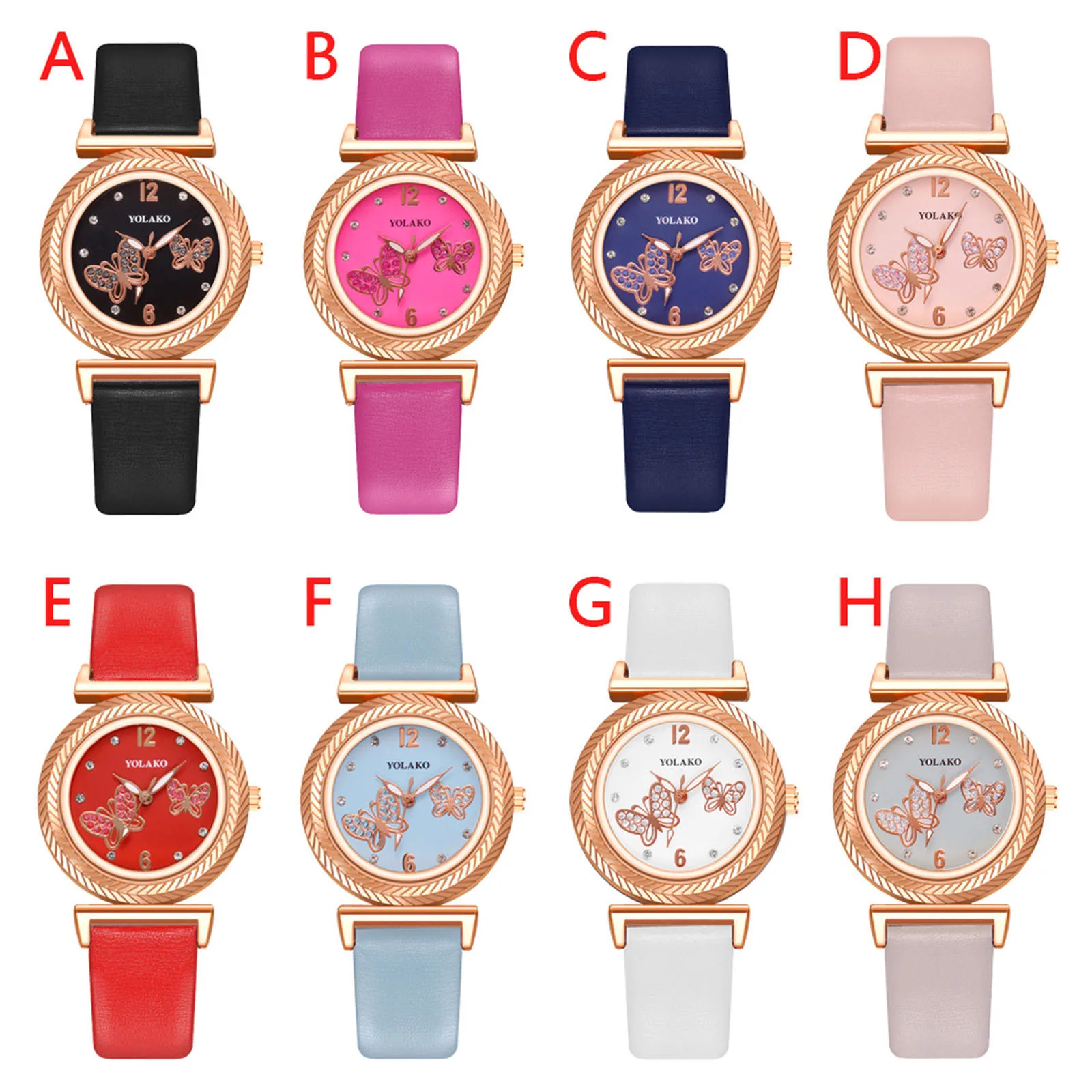 YOLAKO Женские повседневные Модные кварцевые часы со стеклянной поверхностью и кожаным ремешком