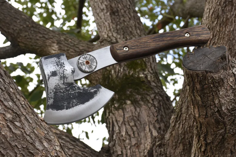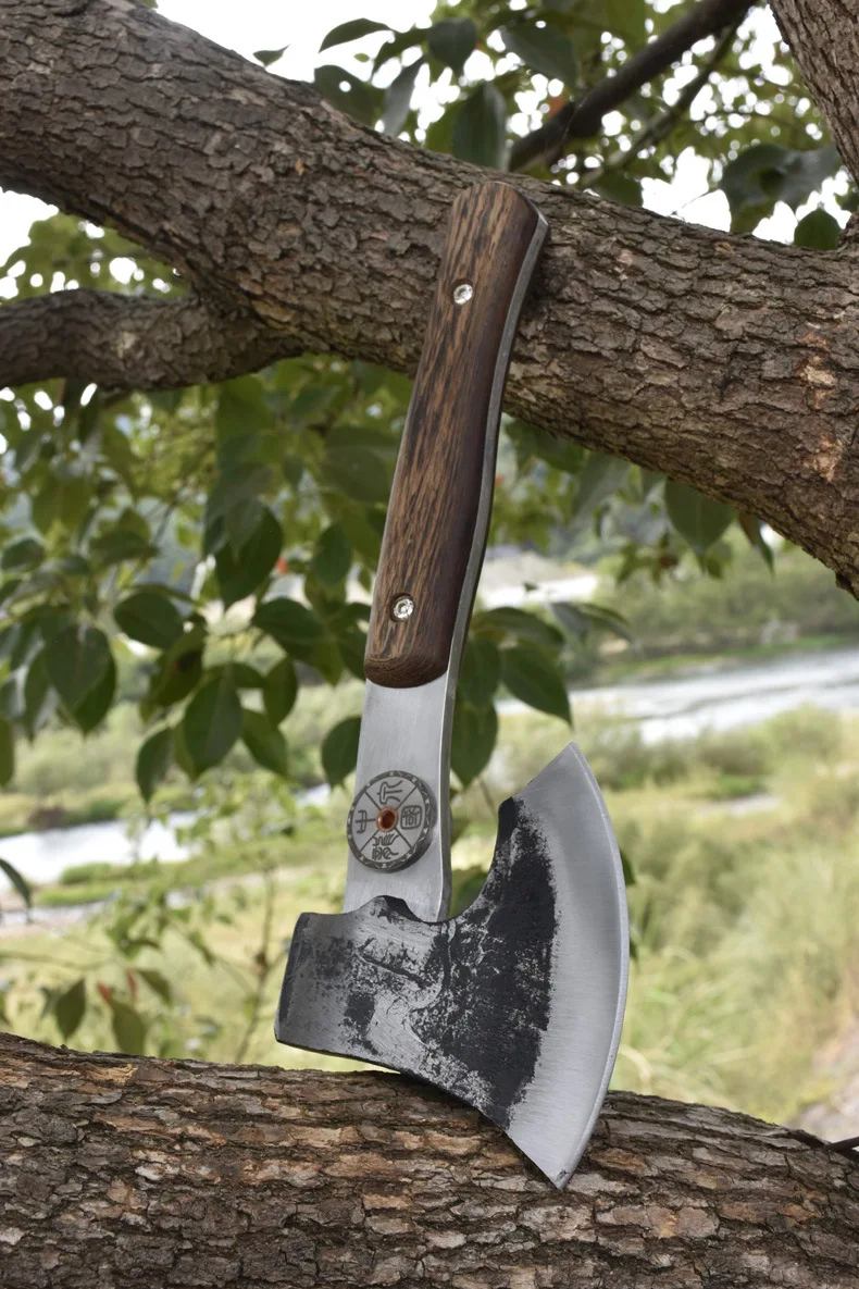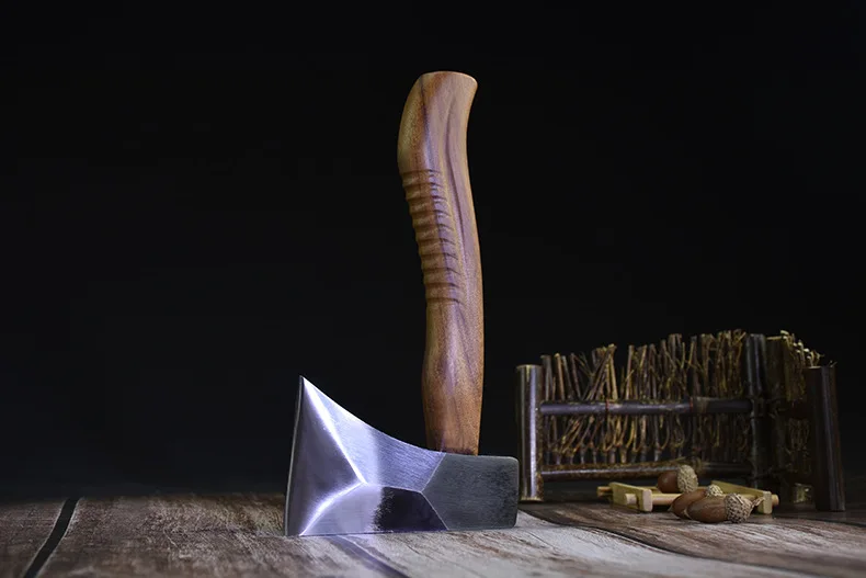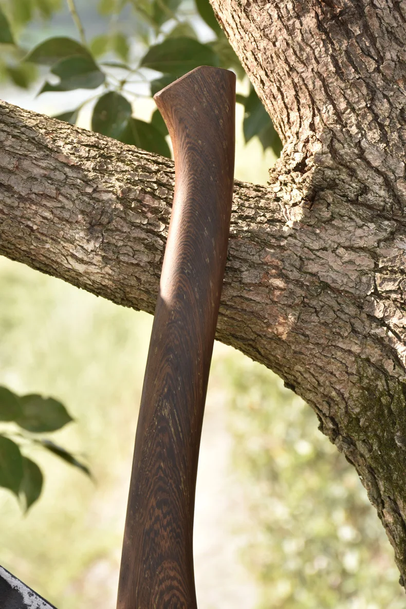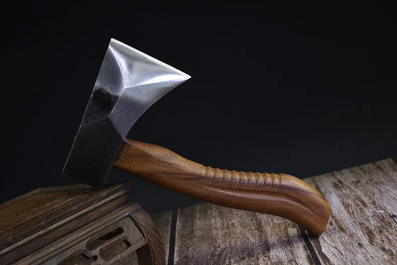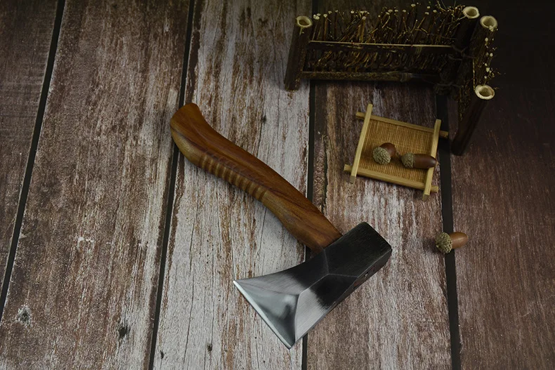 Корпус топора выкован вручную по традиционной технологии отливки меча Longquan, традиционной технологии термообработки и ручке из натурального палисандра. Все просто, красиво и практично.