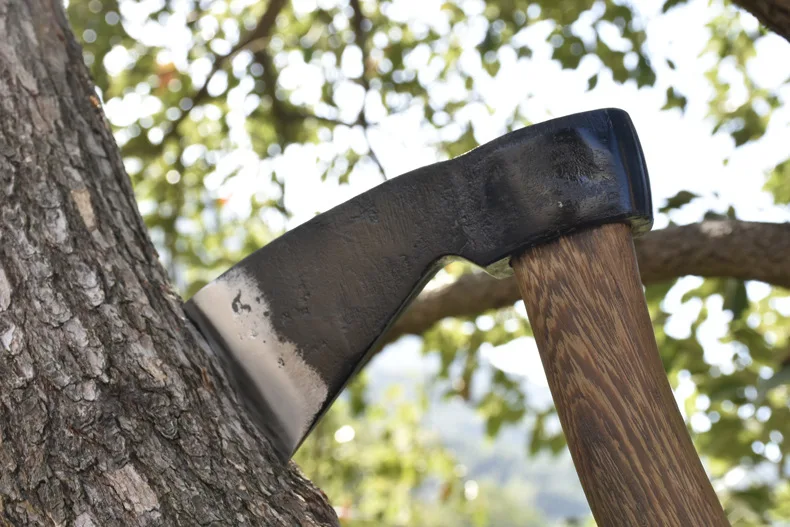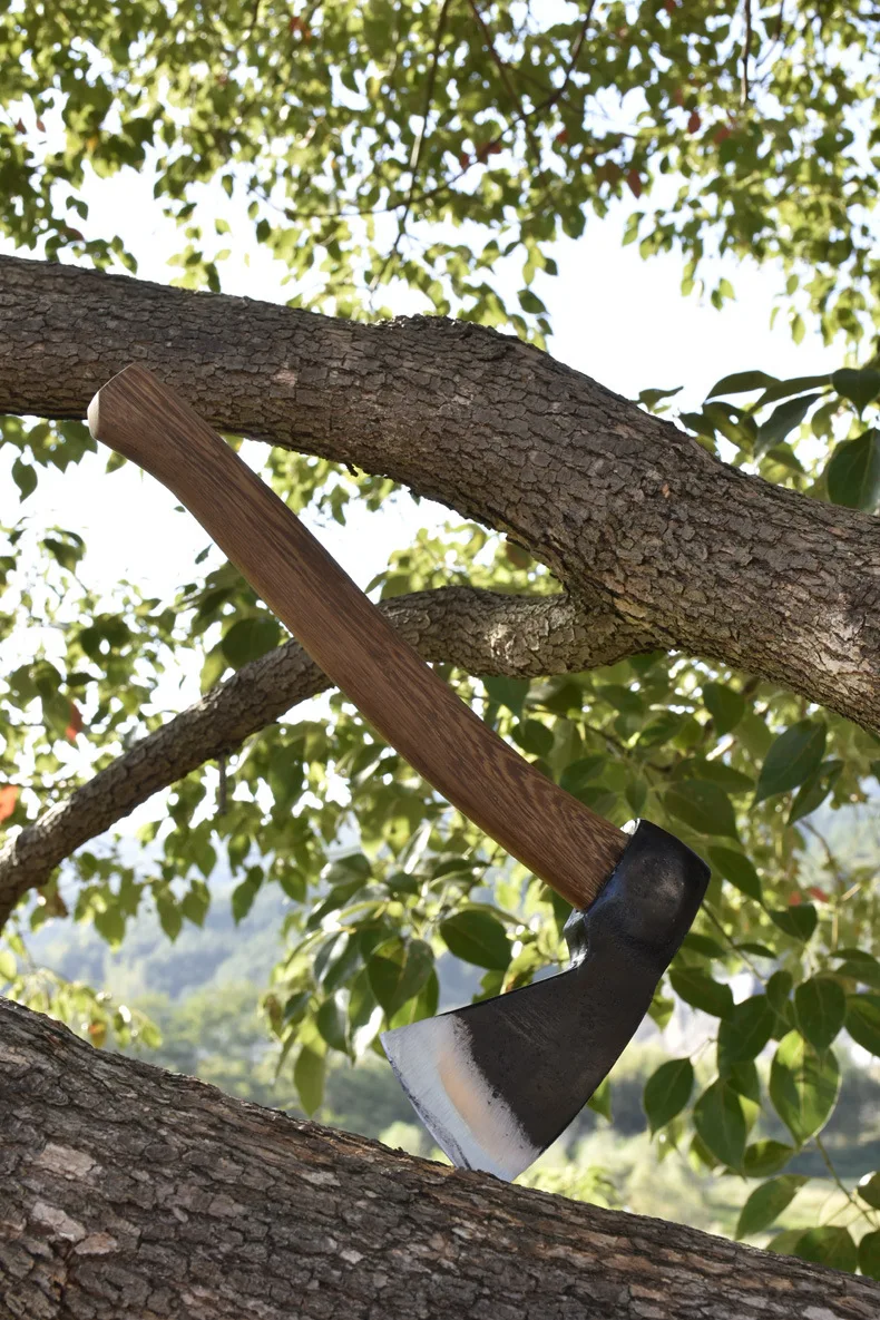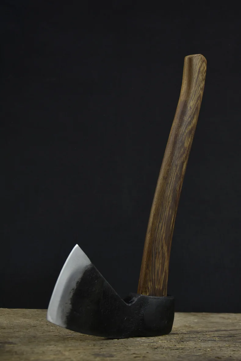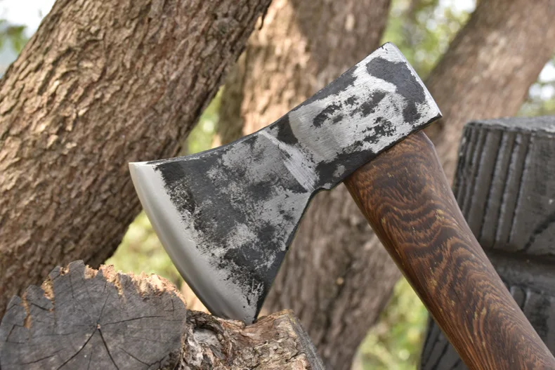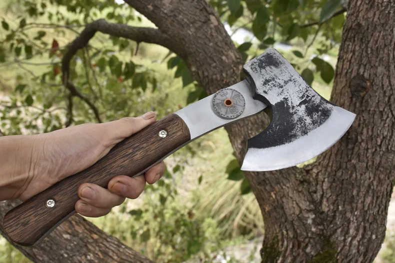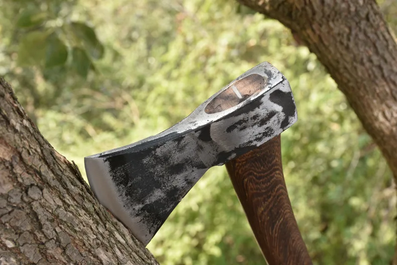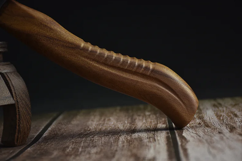 Корпус топора выкован вручную по традиционной технологии отливки меча Longquan, традиционной технологии термообработки и ручке из натурального палисандра. Все просто, красиво и практично.