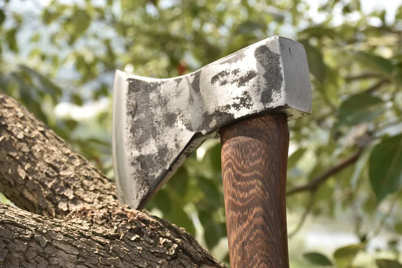 Корпус топора выкован традиционным стальным зажимом longquan,Ручка из натуральных кислотных веток и дерева выгравирована нескользящей текстурой. Длина: 23 смДлина ручки: 19 смДлина лезвия: 8 смВес нетто: 0,75 кгМатериал лезвия: зажим из высокомарганцевой стали LongquanМатериал ручки: кислотная древесина