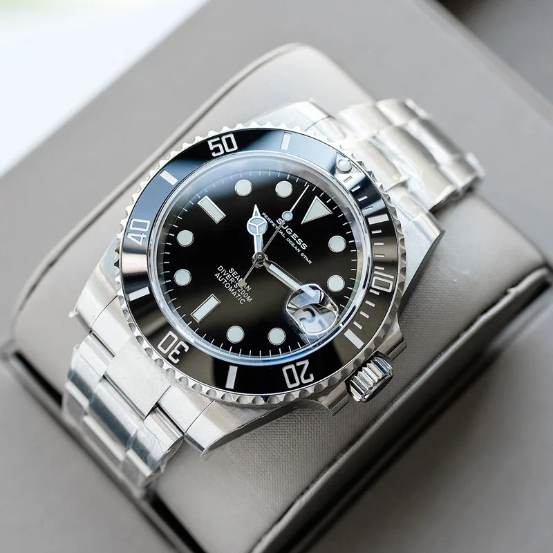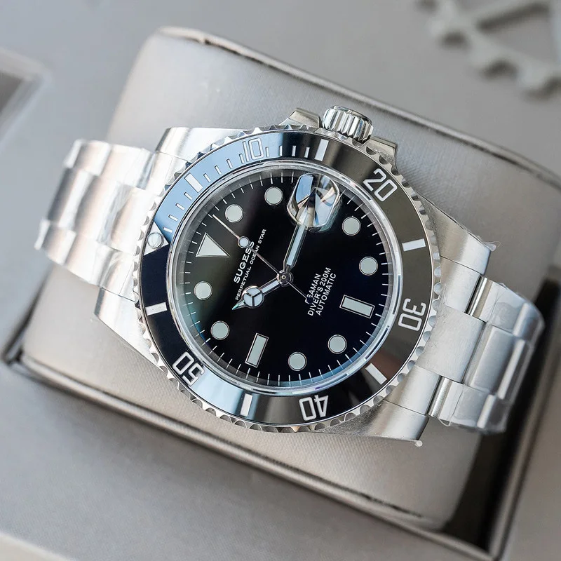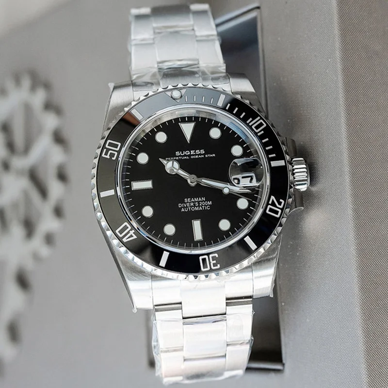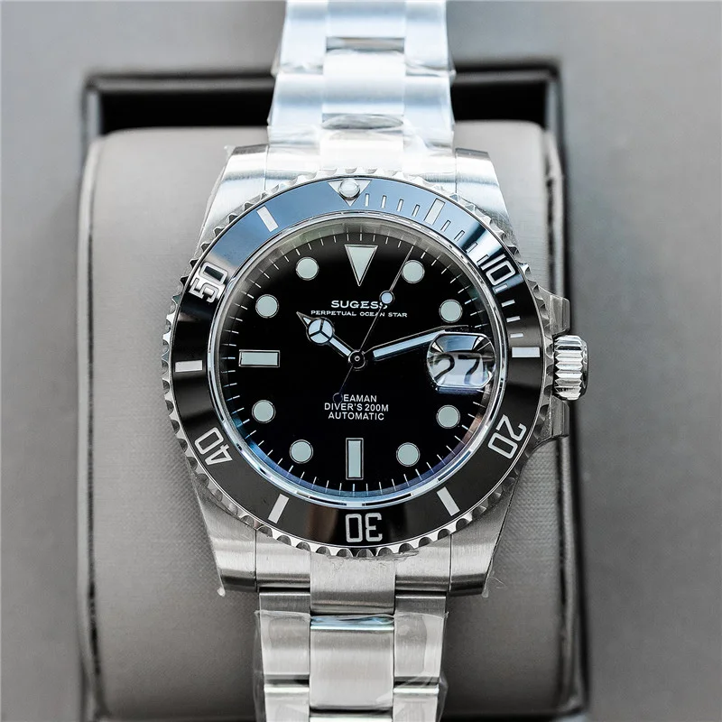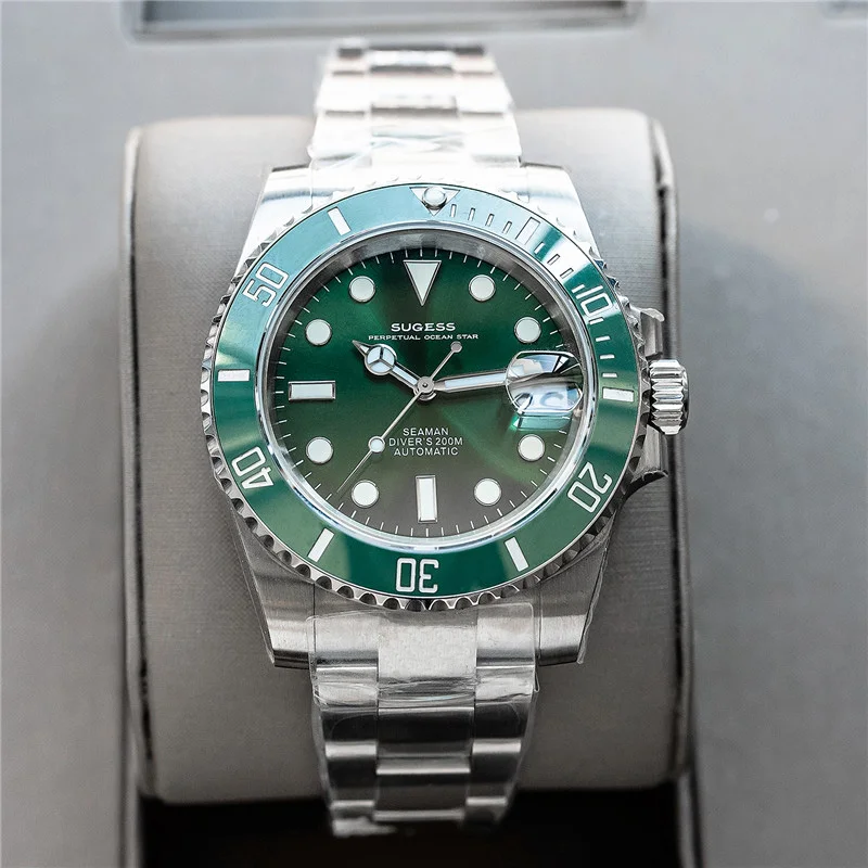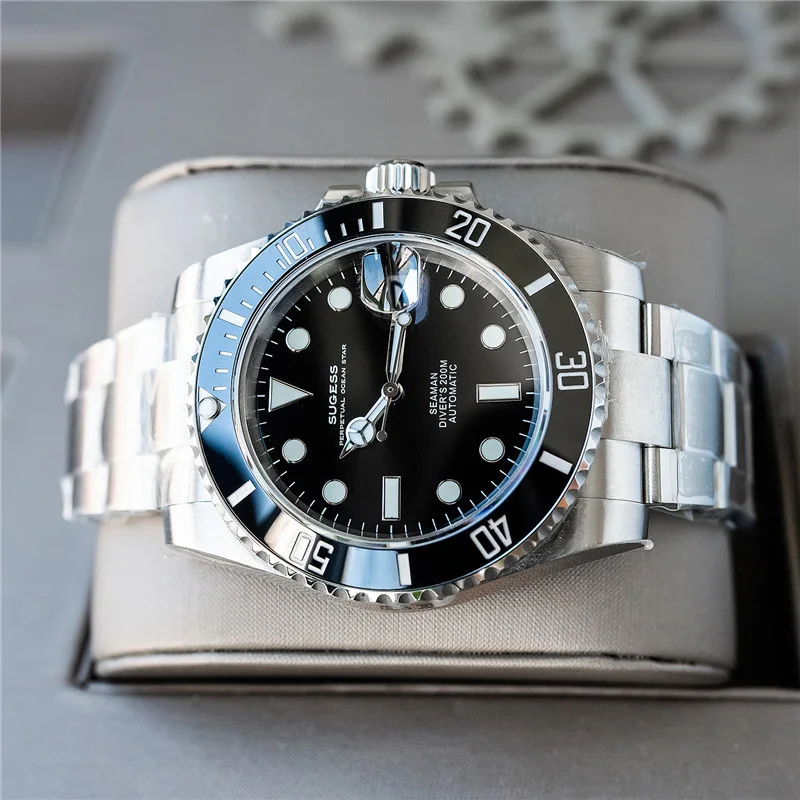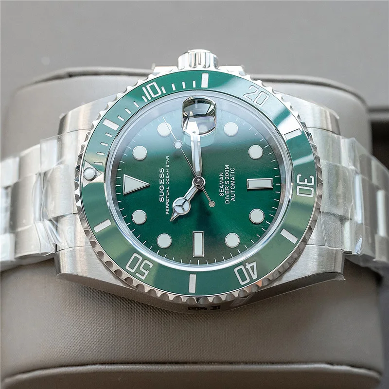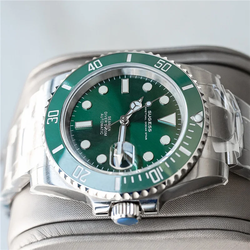 Бренд: Sugess Механизм: подлинный механизм nh35 Диаметр: 40 мм Толщина: 12,5 мм Материал стекла: сапфировое стекло Материал корпуса: нержавеющая сталь 904L Запас хода: 41 ч Водонепроницаемость: 20 АТМ (200 метров) Характеристики: индикатор Даты, Супер Светящиеся стрелки и индекс, кольцо с ободком для записи времени вождения, герметичная задняя крышка
