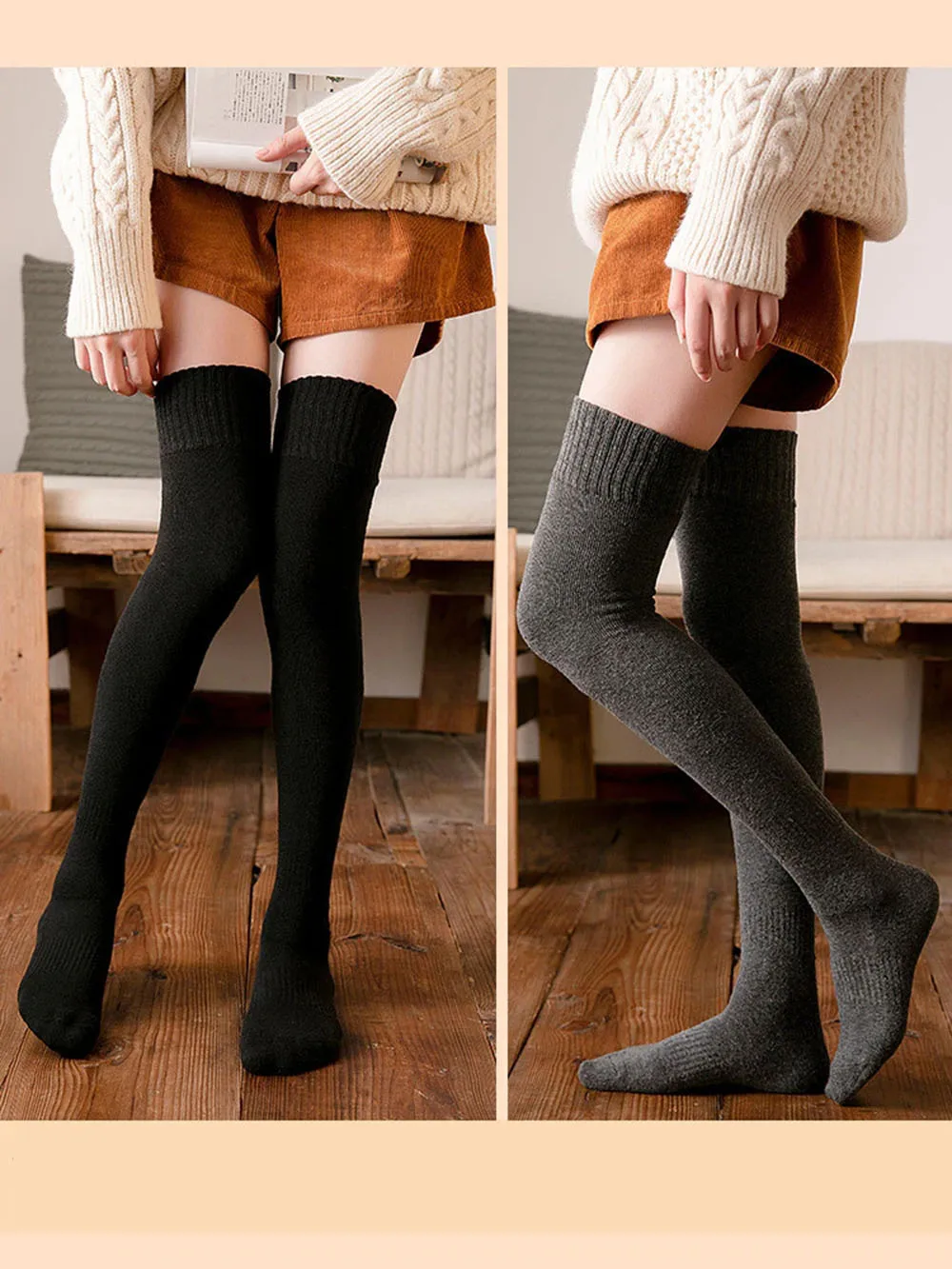 Черные высокие носки до бедра:Зимние носки