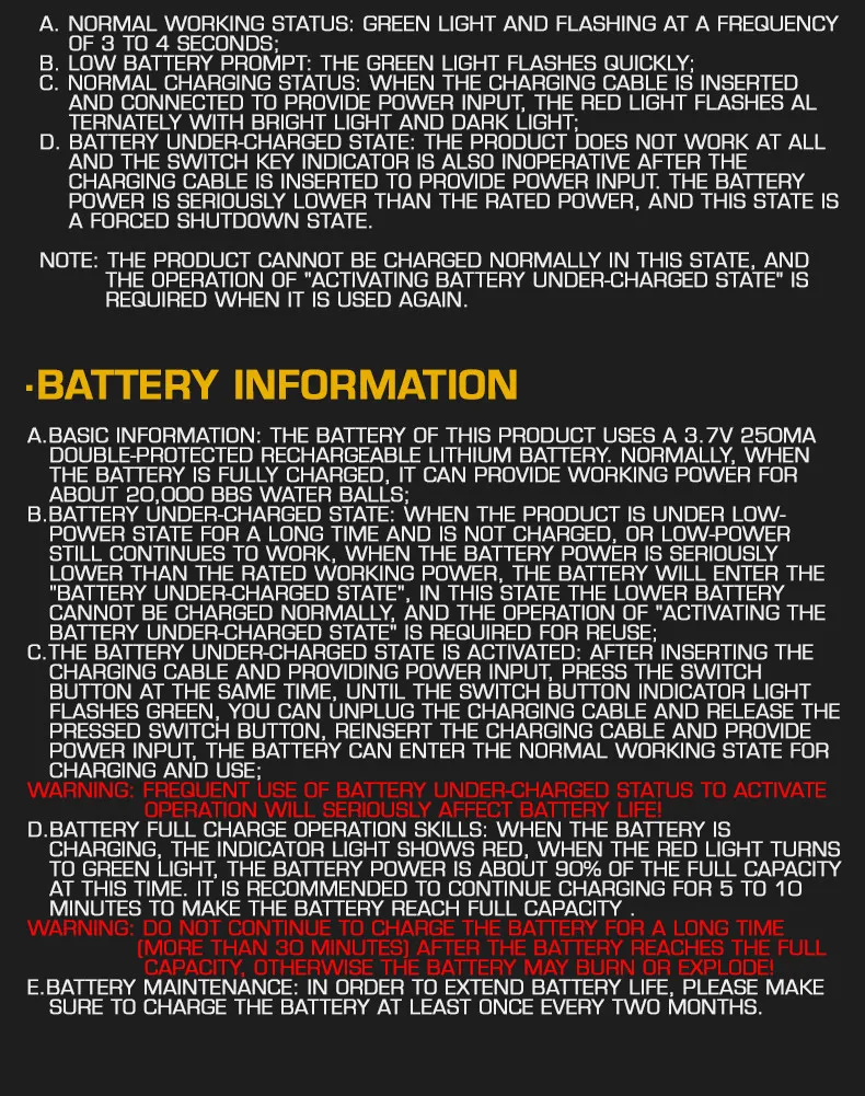 USB-зарядка: Встроенный литиевый аккумулятор. Его можно использовать до 6 часов. Полностью заряженный аккумулятор хватит на более 20000 патронов.