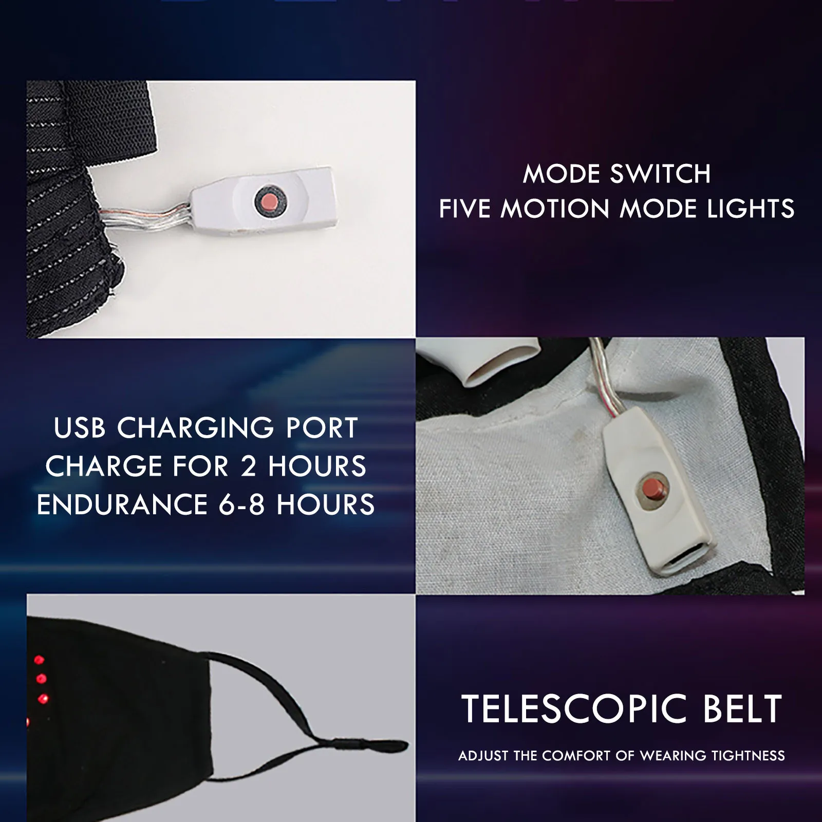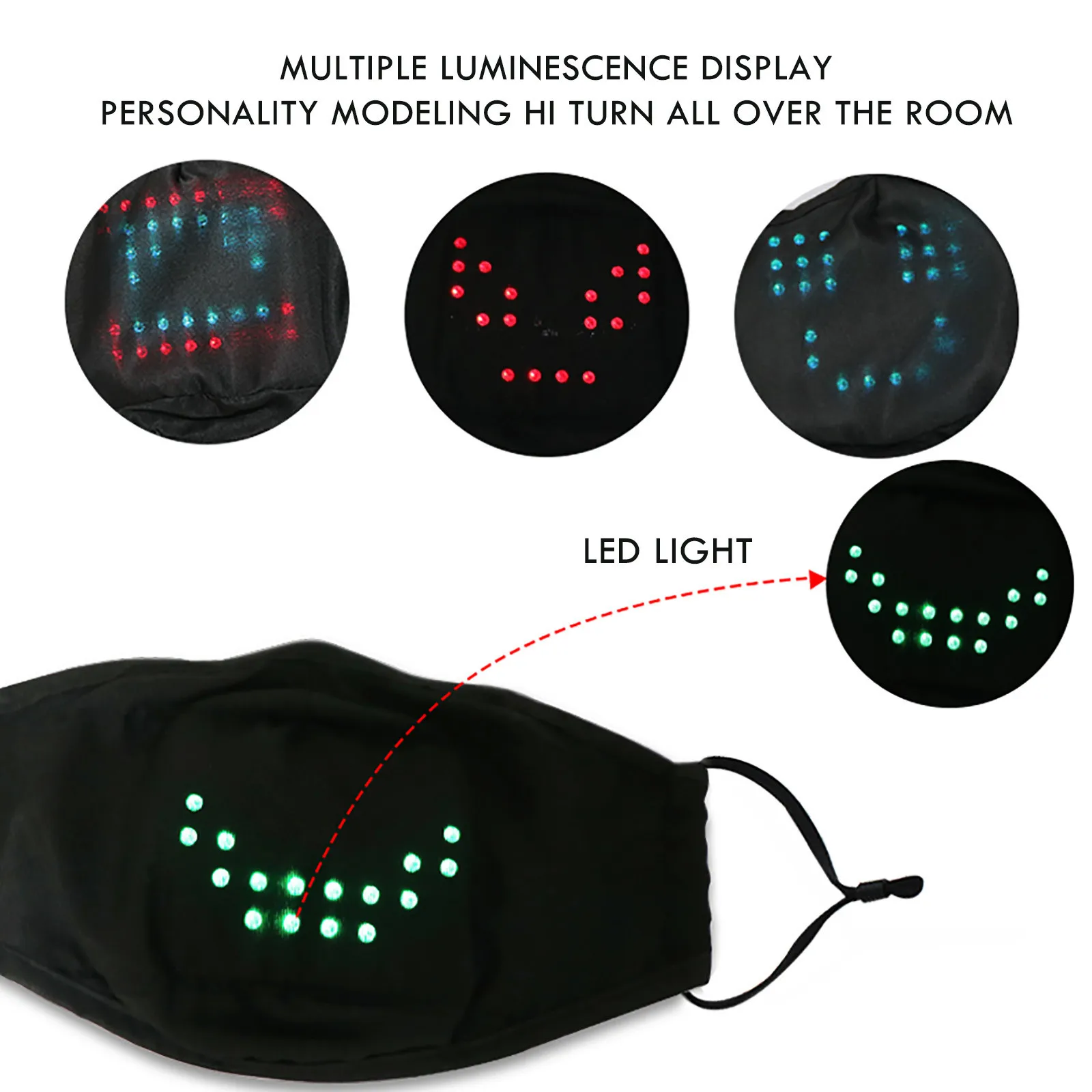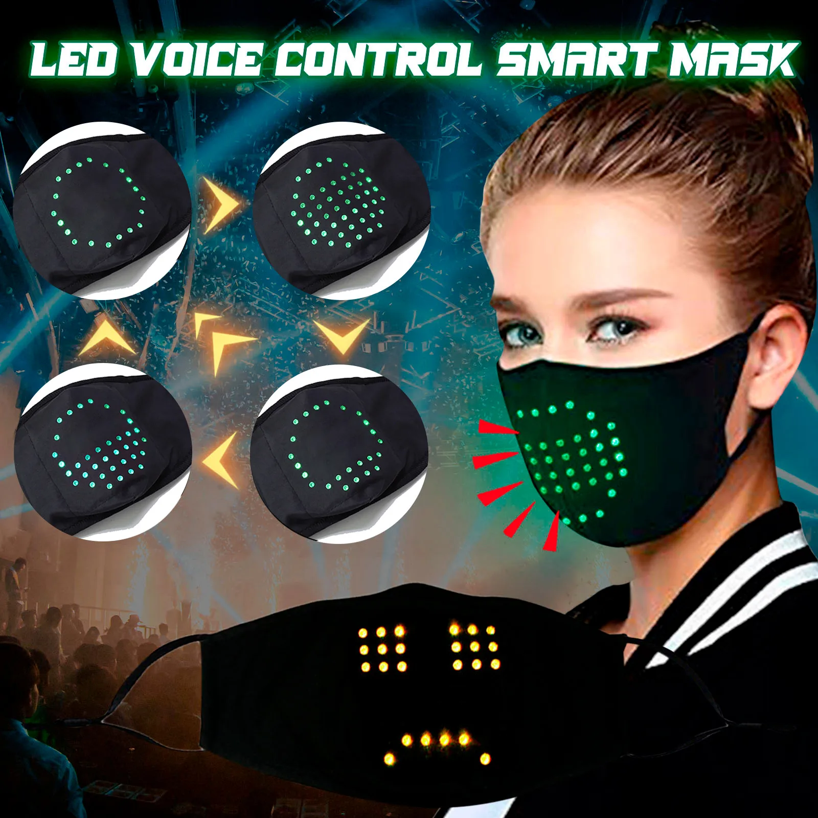 Маска будет мигать и светиться при разговоре. Он используется для обслуживания баров, вечеринок и ночных клубов.