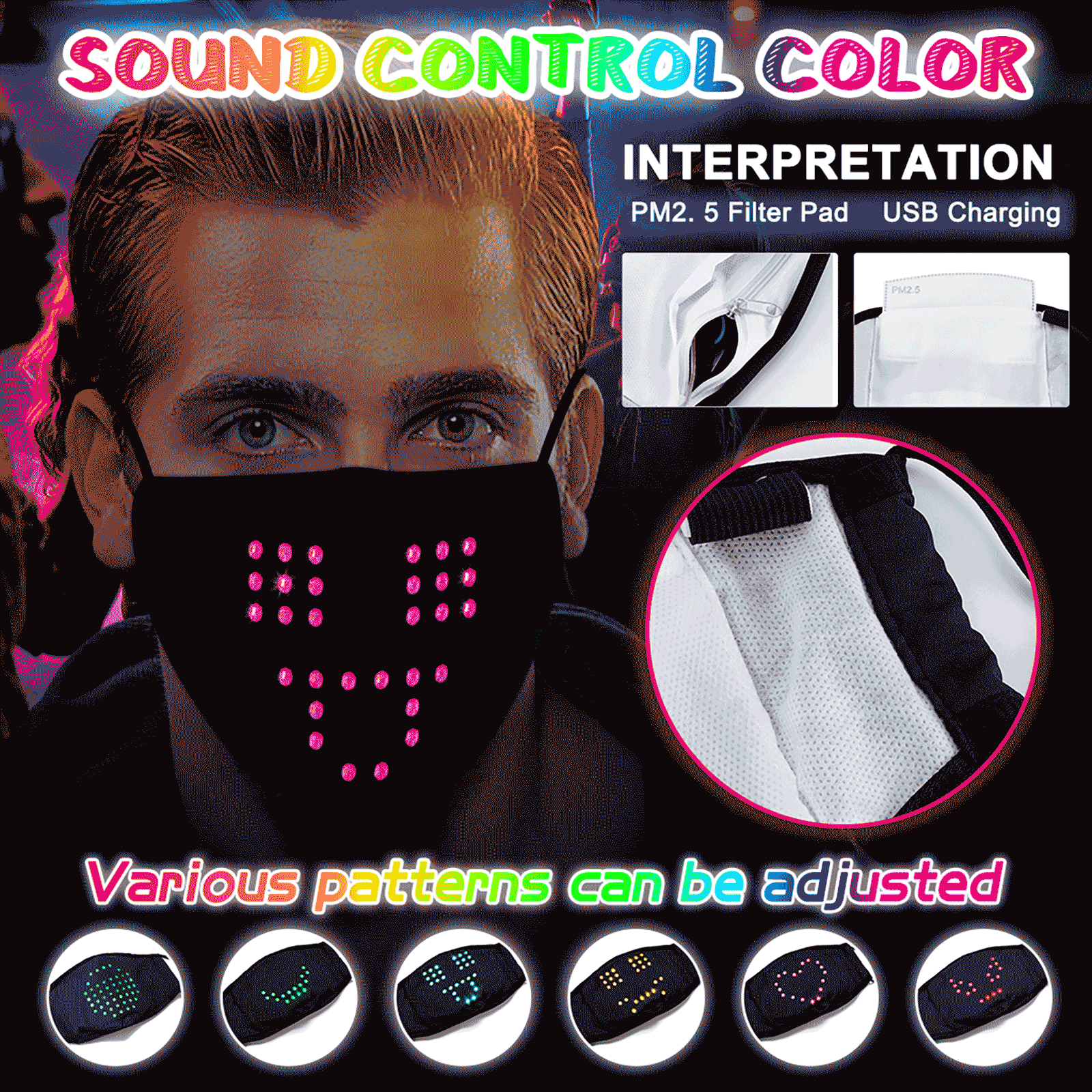 Название продукта: светодиодный светящаяся маска с голосовым управлением