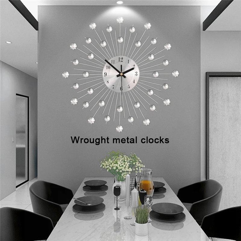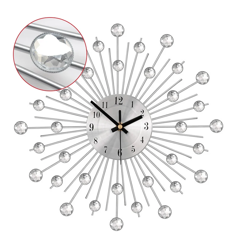 Циферблат с цифрами, бесшумный, не тикающий, высококачественный кварцевый механизм, работающий от аккумулятора. С роскошными блестящими бриллиантами, он Роскошный и красивый, добавит другой атмосферы для вашего дома.