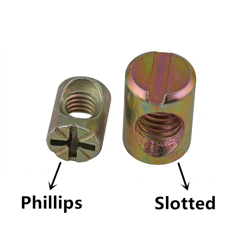 M5 M6 M8 Barrel Bolts Cross Dowel Slotted / Phillips fittings for Beds Crib Chairs Horizontal hole nut hammer embedded nut
