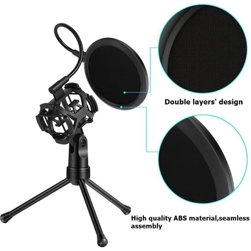 Фильтр: с двухслойным сетчатым экраном, может эффективно уменьшать голосовое выскакивание и поглощение, обеспечивая вам лучшее качество звука записи; И трубка для монтажного фильтра может вращаться на 360 °, супер гибкая.