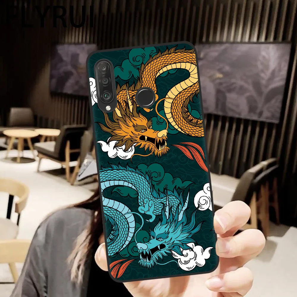 Черный чехол для телефона Huawei P40 Lite E P10 P20 P30 Lite Pro Mate 20 Lite модный противоударный силиконовый чехол с драконом