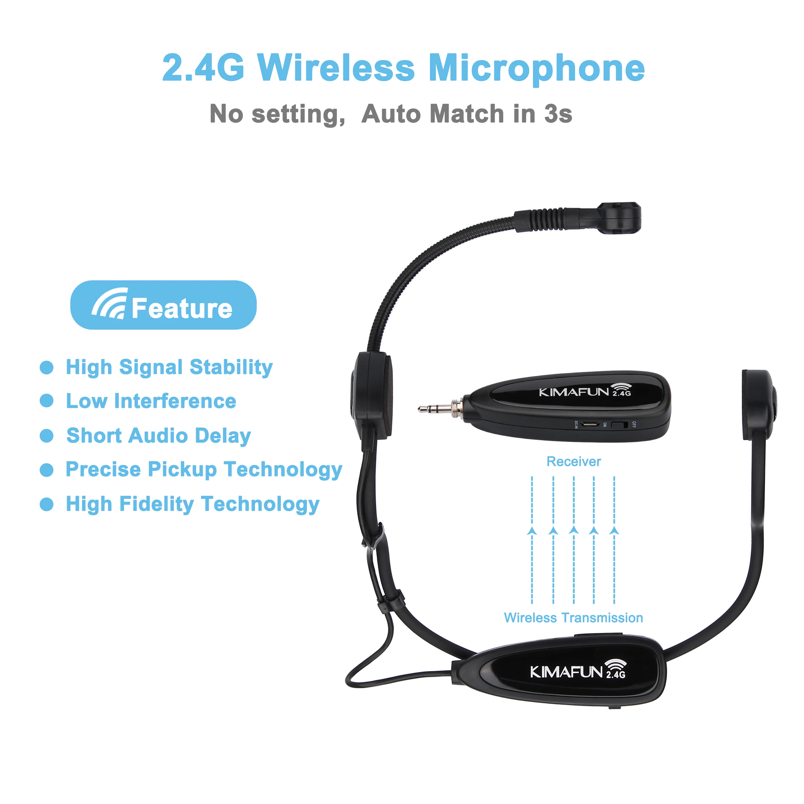 Уникальный дизайн:Беспроводной передатчик крепится на головном кронштейне, маленький и невидимый. Это поможет вам избавиться от оков кабеля для максимального комфорта и свободы движений. Прочная и легкая конструкция не утомит вас во время использования с высокой отдачей, даже при движении, танцах и т. д. микрофон принимает гибкий дизайн с гусиной шеей для точного позиционирования в источнике звука.