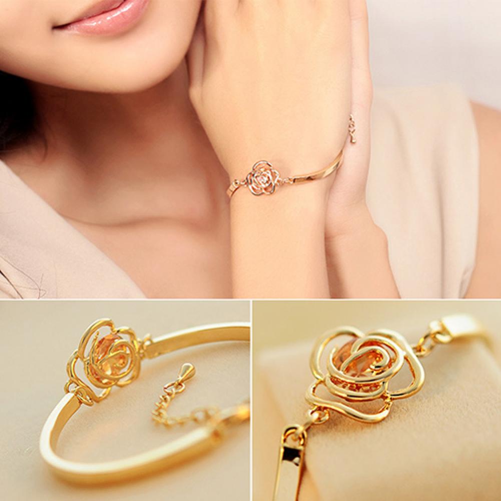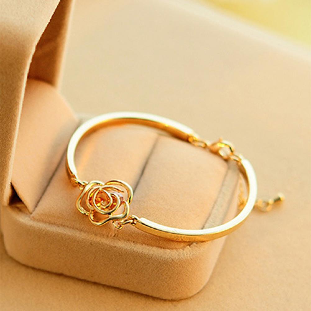 Этот полированный браслет имеет тонкую золотистую ленту из сплава и Шарм в форме цветка розы с кристальной инкрустацией, довольно красивый и элегантный. Потрясающая мода-вперед, чтобы добавить гламурность в ваш повседневный стиль.