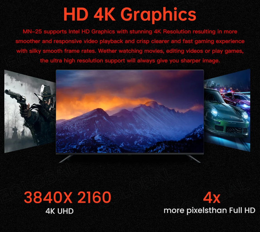 Видеопорты: 1 * HDMI 2,0, 1 * DP, 1 * Type-C, поддержка3x4K @ 60 ГцДисплей