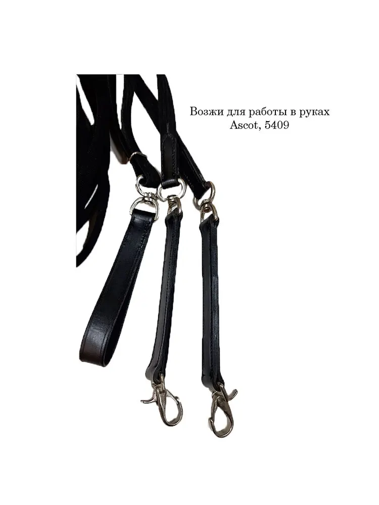 Возжи для работы в руках, тесмянные, кожа, карабины, Ascot, для лошади, цвет черный, 10м