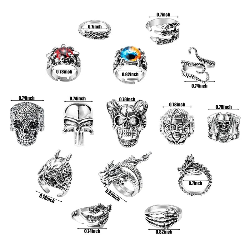 Продукт:Кольца в стиле панк 16 шт.