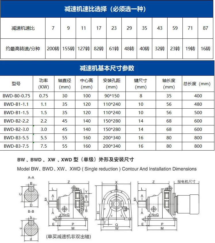 ![BWD cycloid reducer, B0 1500W, Split type、With frequency converter、AC380, stirring, lifting, high torque, low speed motor]()