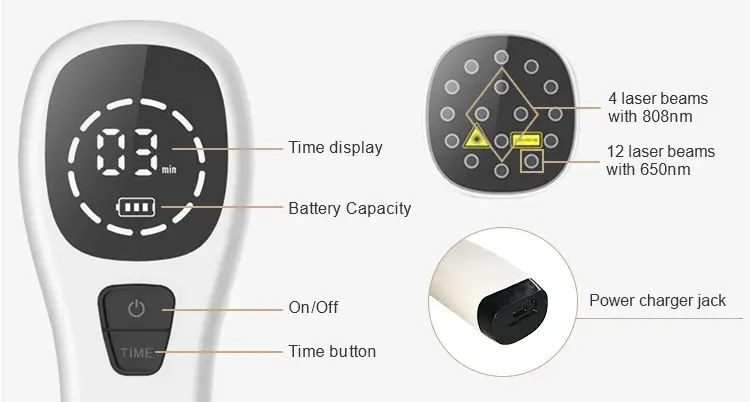 Новое поступление > Новейшее устройство лазерной терапии для облегчения боли. Длительное время > Перезаряжаемая литиевая батарея 2600 мАч внутри, при полной зарядке в течение 2 часов, срок ее действия достигает 4 дней. Очевидный эффект > Идеальное сочетание медицинских 4 шт 808 нм и домашних 12 шт 650нм лазерных диодов, эффективно лечит острую/хроническую боль. Полностью физиотерапия > Низкоуровневая лазерная терапия полностью физическая, безопасная, неинвазивная и без каких-либо побочных эффектов. Портативная и удобная работа > Маленький размер и портативный, специально дизайн для домашнего использования.